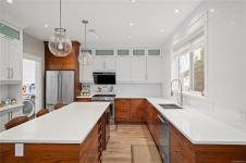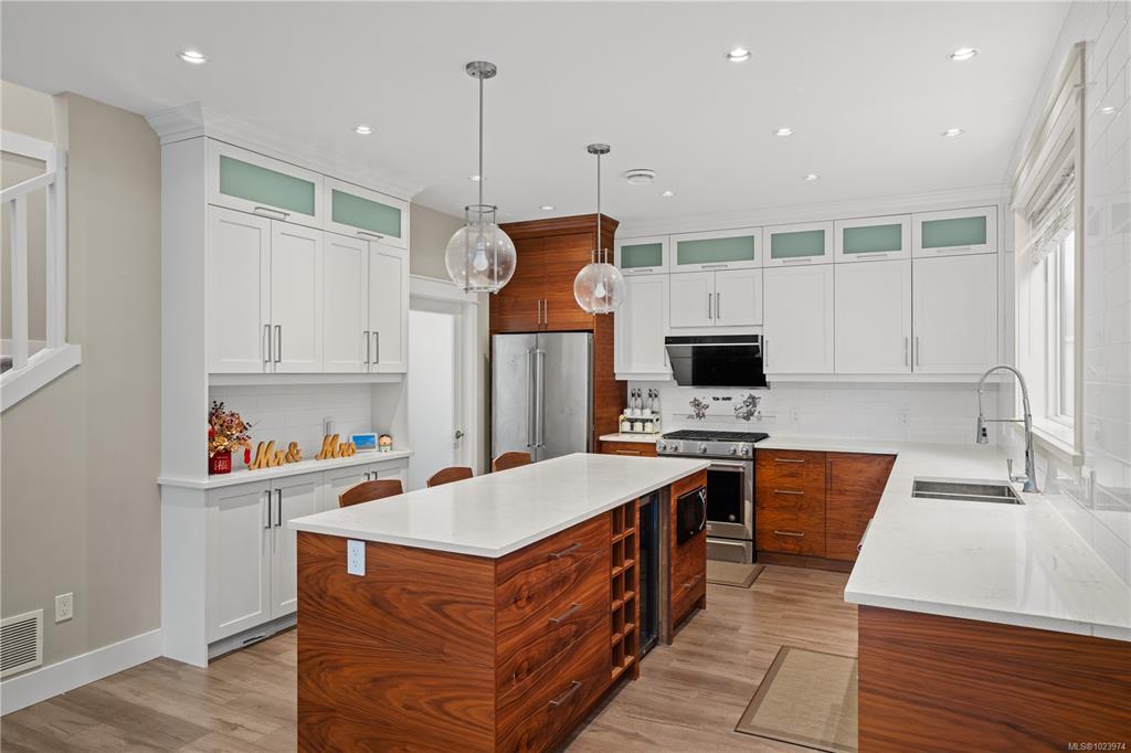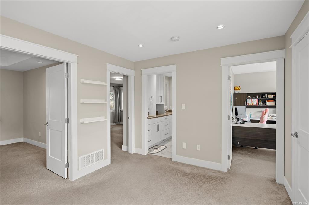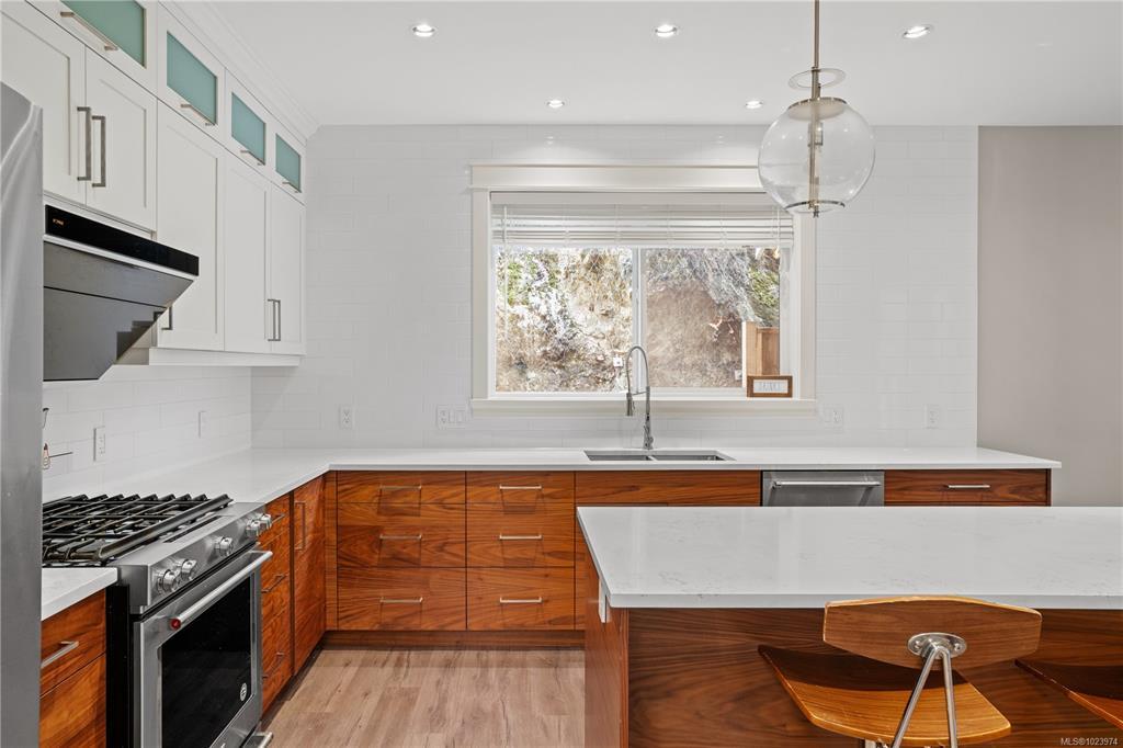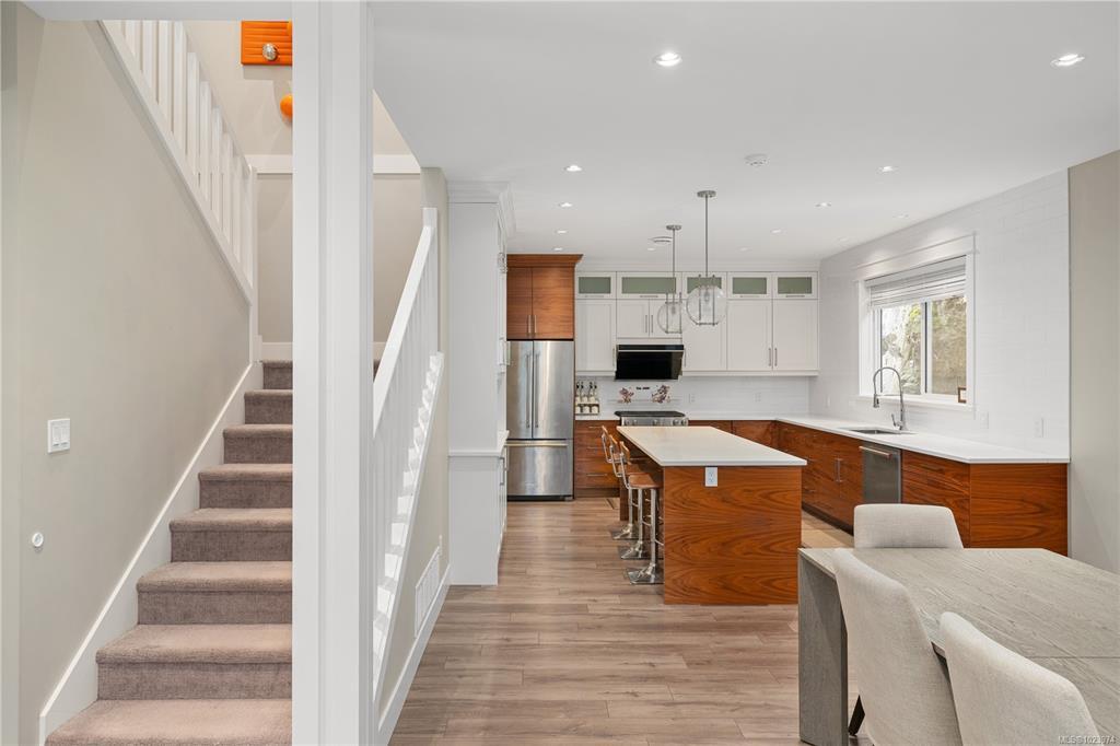 Tucked away in the quiet and sought-after Olympic Ridge community, this elegant 3-bedroom, 3-bath home with a large den blends modern design with everyday comfort. Perfectly positioned at the end of a peaceful street, it is minutes from Royal Bay Secondary, Red Barn Market, scenic parks, Olympic View Golf Course, and public transit, with Starbucks, shops, and conveniences just a short drive away. The main level welcomes you with 9-foot ceilings and a bright open-concept living, dining, and kitchen area designed for relaxed family living or effortless entertaining. The gourmet kitchen showcases stainless steel appliances, quartz countertops, and an extended island for casual gatherings. Upstairs, the primary suite features French doors, a spa-inspired ensuite, and a spacious walk-in closet. Two additional bedrooms share a stylish 5-piece bath. Enjoy the serene mountain and forest views from the elevated setting, offering a tranquil retreat to relax and unwind.