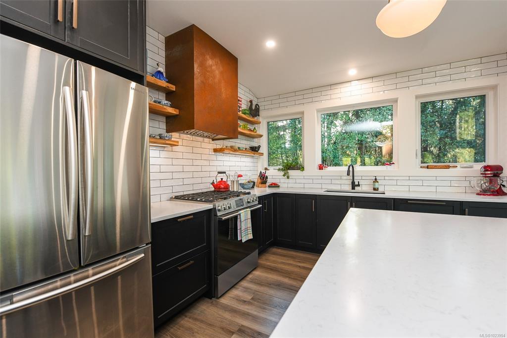 Discover serene west coast living on this nearly 5 acre sanctuary featuring a stunning, 2021 built, modern home with 3 bedrooms, 2 bathrooms, soaring ceilings, brilliant natural light, a dedicated office space, and a sunroom that frames gorgeous views of the property’s well established blueberry farm with approx. 300 thriving plants across four varietals that are fully irrigated. The main home features in floor heat in the bathrooms, Hunter Douglas custom blinds, and a vintage 1-ton hoist on display. A charming, secondary 2023 built Cameron Construction modular, rancher style home offers 2 bedrooms and 1 bathroom, perfect for guests, multigenerational living, or rental income. This home has custom blinds throughout and a 750 sqft cedar deck with a 4 person hot tub. Exceptional privacy is enhanced by two separate driveways, full fencing and an array of outbuildings, including a detached heated garage, 100ft greenhouse, chicken coop, storage sheds, a sheep shed, and a cozy art studio.