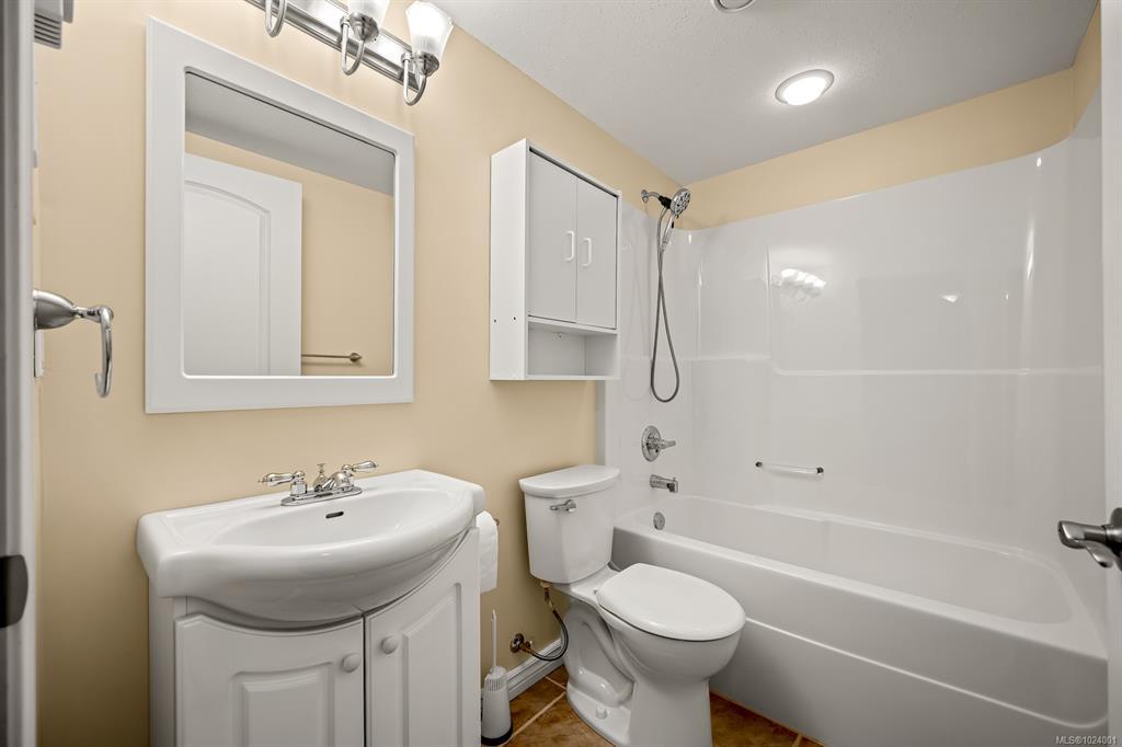 COMOX PATIO HOME with basement living! Located in the beautifully landscaped 55+ Parkwood Estates, this 2-level, 3 bed/3 bath home backs onto the trails of North East Woods and is walking distance to the beach and estuary. The main level features a semi-open layout with 9’ ceilings, laminate floors, gas fireplace, and access to a private deck. The kitchen is bright with lots of prep space, and the main level includes 2 bedrooms and 2 full baths, including a primary suite with ensuite. Downstairs offers a media room with walk-out to a covered patio, a third bedroom, full bathroom, and access to a large crawl space. The home also includes a single garage plus driveway parking. The complex is pet-friendly and beautifully maintained with water features, bridges, and mature landscaping. Located minutes from downtown Comox, the airport, golf, and amenities. Strata fees are $366/month. Move-in ready with quick possession available!