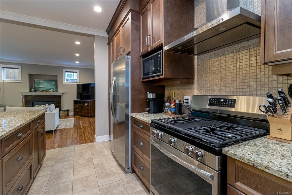 Located in the vibrant Latoria Walk community near Red Barn Market, Olympic View Golf Course, schools, and everyday amenities, this move-in-ready home offers comfort, flexibility, and style. The bright main level features an open-concept great room with a spacious kitchen showcasing granite countertops, stainless appliances, gas stove, heated tile floors, a large island, and a large pantry. Patio doors open to a private landscaped outdoor sitting area, ideal for entertaining. A den or fifth bedroom, laundry, and powder room complete the main floor. Upstairs, the primary suite features a fully renovated ensuite with heated floors including the shower, custom glass, vanity, and modern grey-and-white tile, plus a private balcony. Two additional bedrooms and a full bath complete the upper level with new carpet throughout. A quiet legal one-bedroom suite over the garage with private entry and laundry provides excellent income. Bonus hot water on demand and custom garage storage.