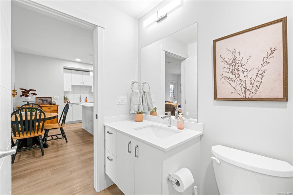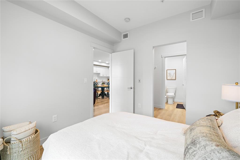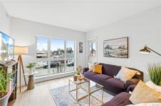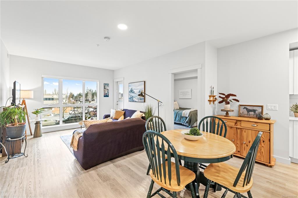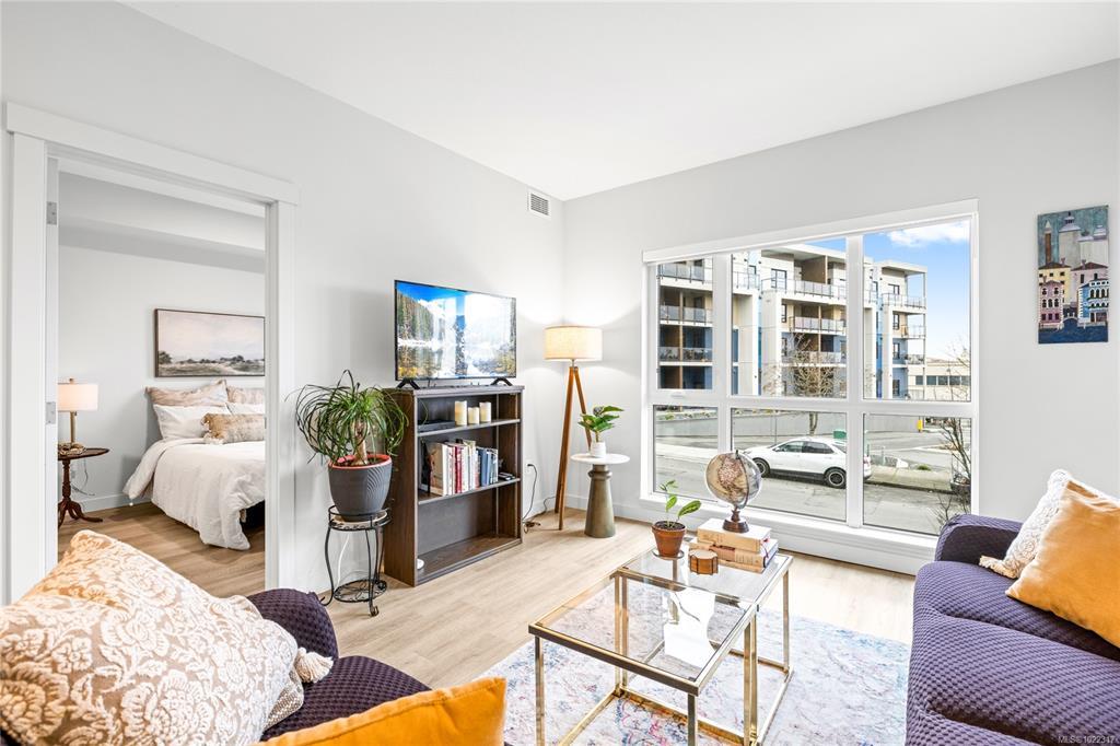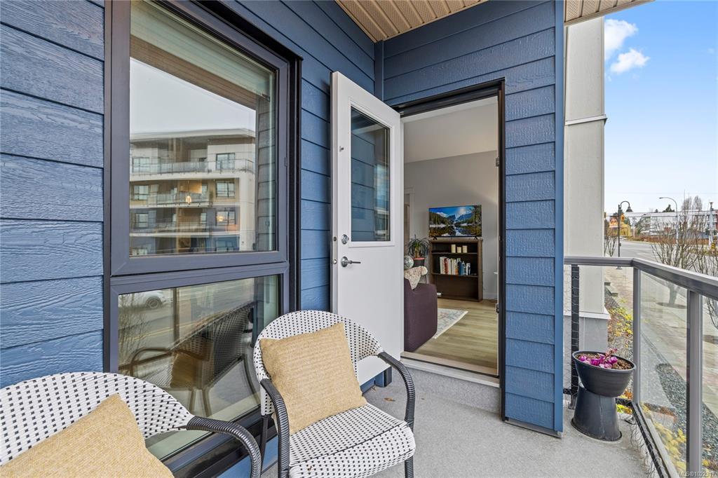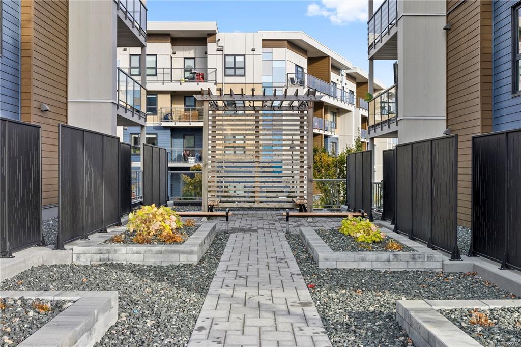 Welcome to Mosaic, a modern 2 bed/2 bath home built in 2023. This light filled first floor unit offers easy access while sitting above street level for added privacy, with open sightlines to the coastal mountains and a peekaboo ocean view. Oversized windows enhance the airy feel, while the stylish kitchen features quartz countertops, soft close cabinetry and a large island. The open floor plan is ideal for entertaining and extends to a covered balcony perfect for morning coffee or summer evenings. Both bedrooms feature walk-in closets, complemented by an in-suite laundry/storage room plus a separate storage locker. Included is a sought after underground parking stall with opt. EV charging upgrade. Designed with efficiency, the home offers a heat pump for heating/cooling, hot water on demand, triple pane windows and smart water shut off. Steps to Parksville’s main beach, groceries, coffee shops, restaurants and trails, this is central living at its best. Pet/rental friendly.