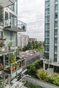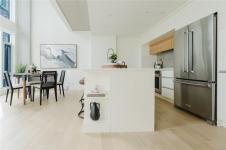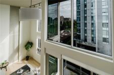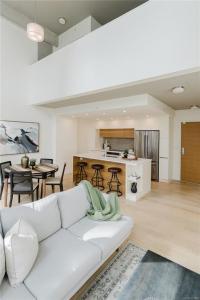 Immaculate and truly move-in ready, this exceptional loft-style residence is one of only two lofts in the building, offering a rare and striking living experience. From the moment you enter, the wow factor is undeniable, with a dramatic wall of double-height windows complete with motorized blinds, flooding the space with natural light and highlighting the trendy, modern design. The main level features a spacious open-concept layout with a generous living room, dining area, and sleek kitchen—an entertainer’s dream and the perfect condo for hosting. Upstairs, past a convenient two-piece bathroom, you’ll find a stunning loft bedroom retreat large enough for a king-sized bed, seating area, or home office. Bathed in sunlight, this level also includes a four-piece bathroom, custom closet, and laundry. An additional hallway access from the loft level, whether for easy moving or skipping the stairs altogether. The unit includes parking and a storage locker. Very quiet location in the building!