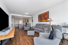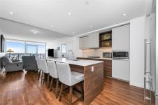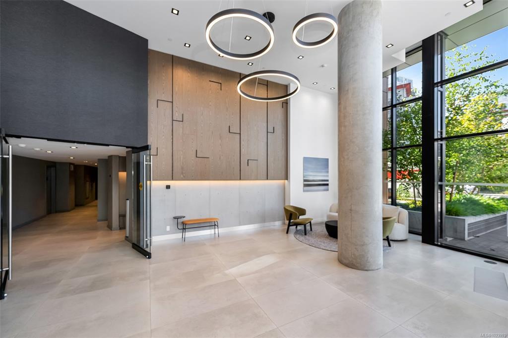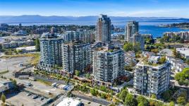 Perched on the 11th floor, this beautifully appointed 2 bed/2 bath home offers sweeping city, ocean & mountain views, enjoyed from both the expansive 179 sf. balcony & the bright, open interior. The open-concept layout is anchored by a chef-inspired kitchen featuring a quartz island, gas range & custom cabinetry, perfectly suited for everyday living & entertaining. The primary bedroom is a true retreat, complete w a walk-through closet, spa-inspired ensuite. A thoughtfully separated 2nd bedroom and full bath provide ideal flexibility for guests, family or a dedicated home office. Secure ug parking & a storage locker are included. At Dockside, the lifestyle is as compelling as the location, w curated amenities including a fitness centre w Peloton bikes, rooftop terrace with BBQs, residents’ lounge, pet wash station, bike storage. Step outside to the Galloping Goose, cafés, dining and downtown. Pet-friendly, rental-friendly, still under warranty, built by award-winning BOSA Development.