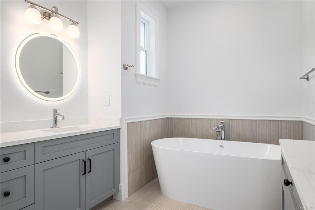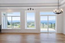 GORGEOUS, OCEAN VIEW level entry, 4,000+ sqft. home in prestigious Oceancrest. Great room boasts white oak, wide plank engineered hardwood floors, cozy fireplace, 10-ft coffered ceiling, built-ins & panoramic views of the Salish Sea, Winchelsea Islands & mainland mountains. Gourmet kitchen features custom cabinetry, quartz counters & large work island. Adjoining dining area offers access to the large rear deck. Primary suite boasts a reading nook w/ cozy fireplace, WIC, deck access & ocean view! 5-pce ensuite has soaker tub, 5 ft WI shower, double vanity, make-up station, one-piece toilet w/ bidet. A spacious bedroom, 4-pce main bathroom & laundry room completes the main floor. The mid-level offers a spacious family rm w/ access to the covered rear deck. It also offers a second primary bedroom (with 3-pce ensuite & WIC) & two additional bedrooms share a 4-pce bathroom. Lower floor offers a games room w/ wet bar, access to the rear patio /yard (with a view) and a legal 2-bedroom suite.
