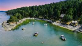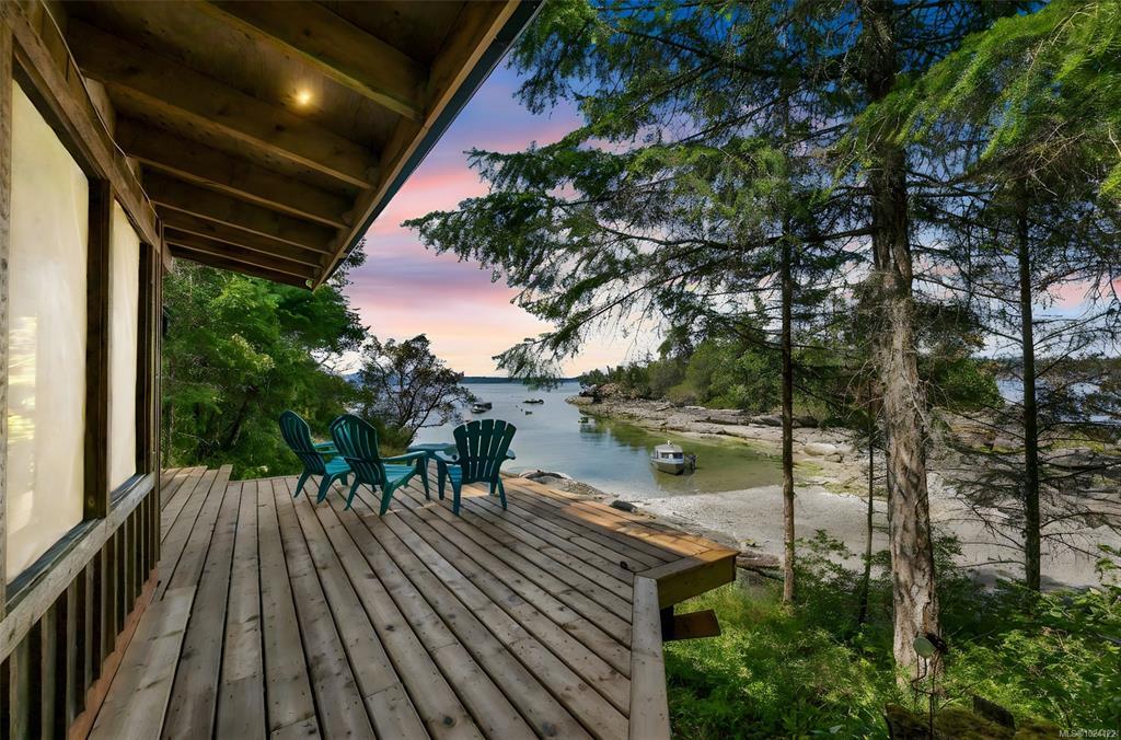Escape to Ruxton Island, a hidden gem in the Gulf Islands—a peaceful, boat-access-only retreat where life slows and nature takes the lead. Framed by warm sandstone shores and quiet forests of arbutus and fir, this island offers a rare sense of calm. Set at the head of a protected bay, this 1.51-acre property includes a private mooring buoy for easy access. The charming off-grid cottage features 2 bedrooms plus a loft, 1 bath, a cozy wood stove, and two decks ideal for taking in ocean views. Seals and otters swim by, eagles soar above, and with no cars or crowds, Ruxton Island is the perfect place to unplug, unwind, and truly feel at home. Included in the sale 19.5' Legend XCaliber boat and 135 Mercury Engine!