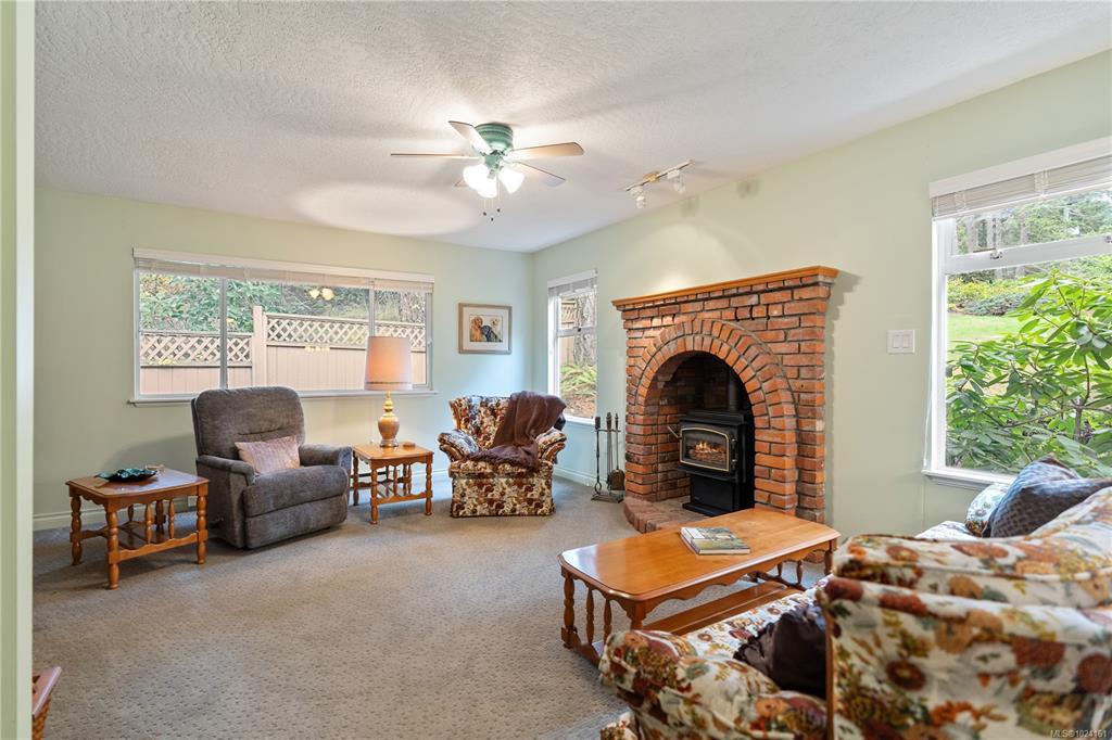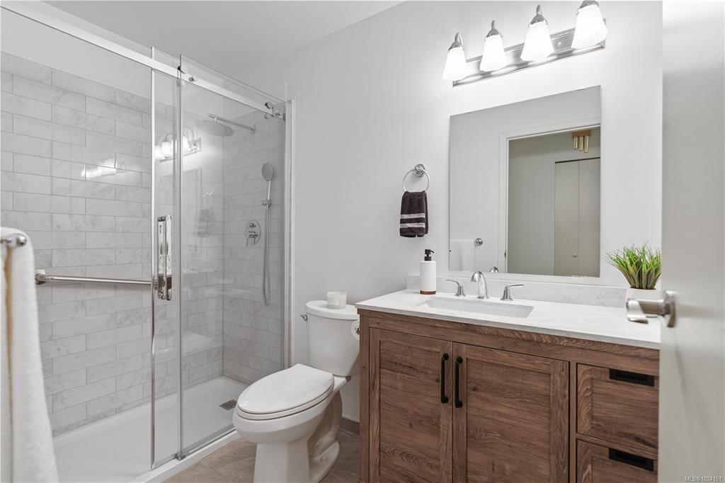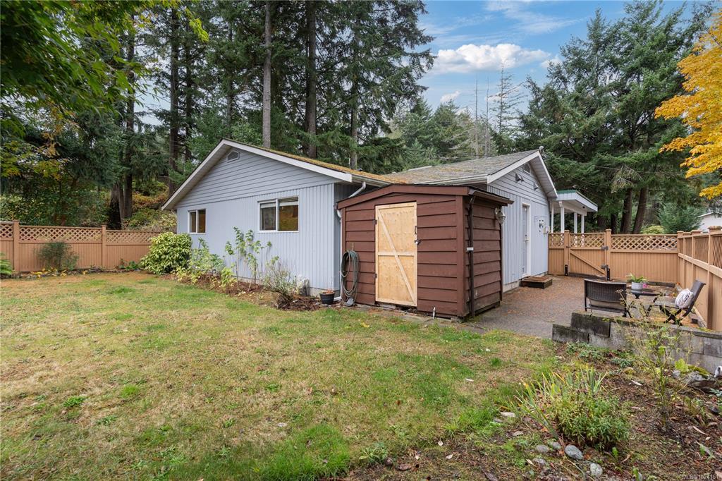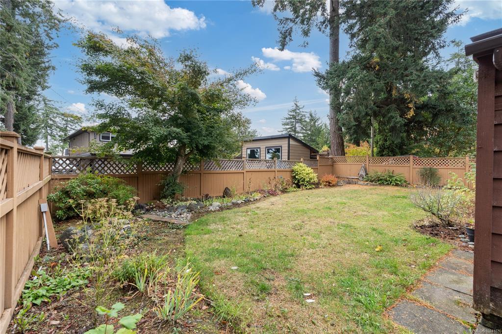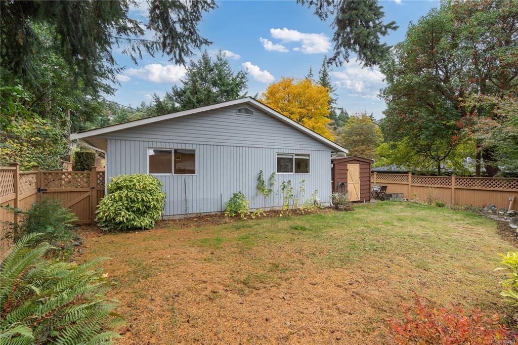 Lovely one-level home on a nicely sized, flat lot in beautiful Colwood! Great layout, on one floor w/3 nicely sized BR's, a large living room, dedicated dining space & kitchen w/skylight & newer, stainless appliances. Big, bonus laundry room w/lots of storage space, cupboards, counter & sink, plus a door to the patio, leading to backyard. Central vac, air exchange unit & newer HWTank. Bathroom fully updated in 2023 w/quartz counter, glass door shower w/rain head & wand & heated tile floor. Living rm has a fabulous gas stove, providing coziness & an alternate heat source (even in power out.) Backyard fully fenced, landscaped and easy to maintain. Shed has new door & even has power! Large front yard w/mature hedge & trees - a beautiful buffer to the outside world. Home repainted in 2020. Lots of parking including room for RV. Located minutes to Westshore Town Centre, Belmont Market & so much more. Lookout Lake & Esquimalt Lagoon await! Rare rancher, and a special one, so act quick!