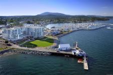 Proud to present The Bayside Towns on Fifth - a curated collection of 16 townhomes in Sidney's most desirable neighbourhoods, ROBERT'S BAY. Offering a modern farmhouse aesthetic & varied layouts appealing to young families through to active retirees. This plan offers 3 beds, 3.5 baths, 9' ceilings on main and upper level and oversized single car garage. Light wide-plank hardwood throughout main level & large picture windows will keep the home light & bright. Custom white kitchen cabinets with quartz counters, generous island & stainless steel appliances. Laundry room with sliding barn door on upper level. Efficient heat pump for year round heating and cooling. In-floor heat in all tiled bathrooms, both upper level bedrooms with their own ensuite. Interlocking brick, sunny patio with irrigation. Close to beaches, trails and easy walk to Beacon Ave, this is a 12/10 location!