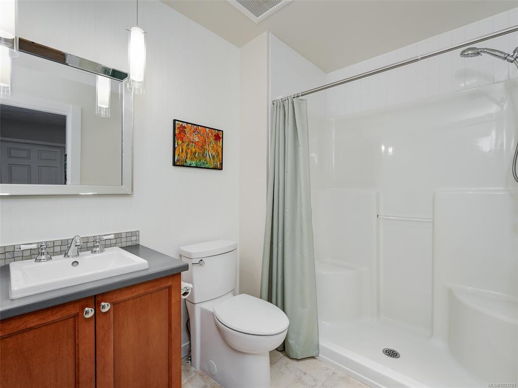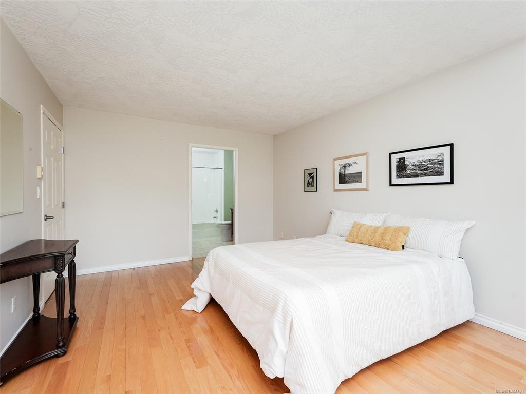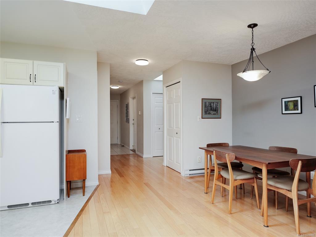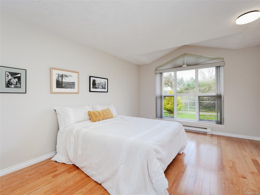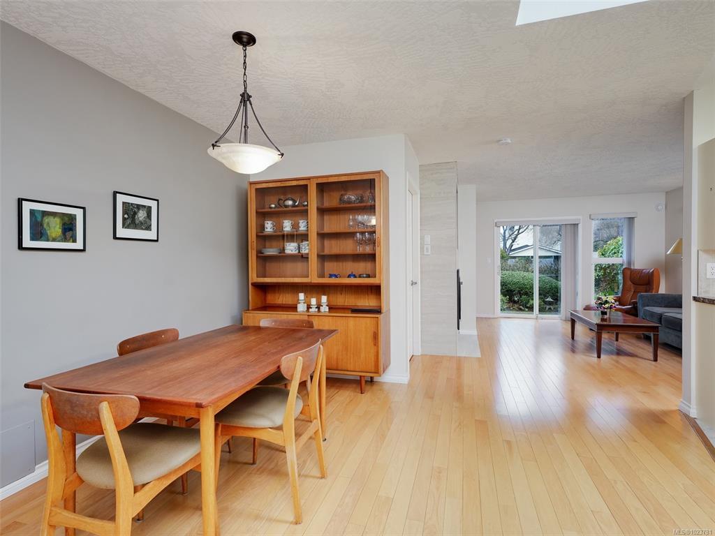 OPEN SUN 2-4. UPDATED TOWNHOME at Rosebank Gardens, a 55+ townhome community offering comfortable one-level living. This beautifully updated level-entry end unit features a large front room ideal for a home office or guest bedroom, and a spacious primary bedroom located at the back of the home for privacy, with a closet and five-piece ensuite with a walk-in shower. The open-concept kitchen has been meticulously maintained and flows into the adjoining dining area. A spacious living room with gas fireplace opens to the patio through sliding doors, while skylights and large windows bring in abundant natural light. Owner improvements are new flooring, custom window coverings, and refreshed bathrooms, including soaker tub in second bath. Attached single garage provides secure parking, storage, and workspace. BBQs and some rentals are permitted. Conveniently located close to Tuscany Village, Cedar Hill Rec, parks, trails, golf courses, shopping, and transit, this home is move-in ready.