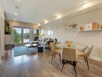 Located in the highly sought-after Travino community in Royal Oak sits your 5th-floor condo offering stunning sunset and valley views. Boasting nearly 1,000 sq.ft., this home features 2 BR and 2 baths. The gourmet kitchen is a with quartz countertops, stainless appliances, custom lighting, and a breakfast bar with seating for four. The gourmet kitchen has an eating area that flows seamlessly into the living room, complete with a HD electric FP with space for your widescreen TV above. Step out onto your oversized balcony to enjoy the views. The primary BR offers more views and a 4-piece ensuite with a soaker tub, tile, and quartz countertops. Additional highlights include in-suite laundry, secure underground parking with an EV charger, rooftop patios with 360-degree views, fitness center, Theatre room, dog park with wash station, and more. Steps to Broadmead Village, Royal Oak Centre, restaurants, parks, and trails. This condo perfectly blends convenience with lifestyle. Call Now!