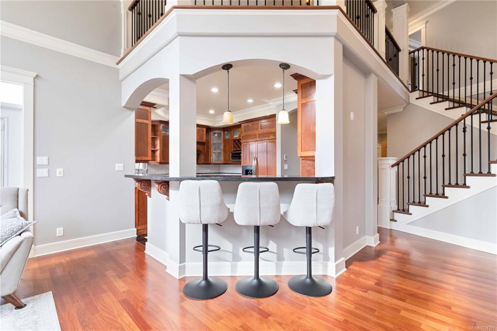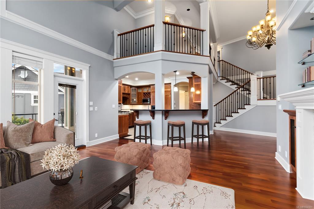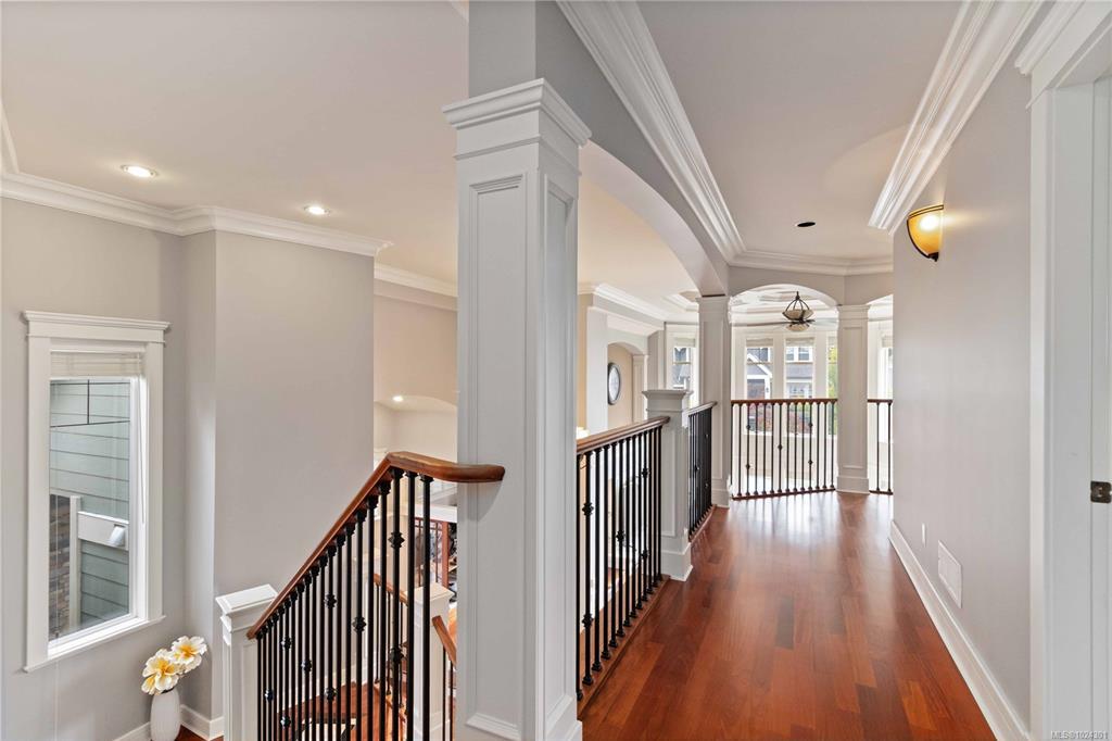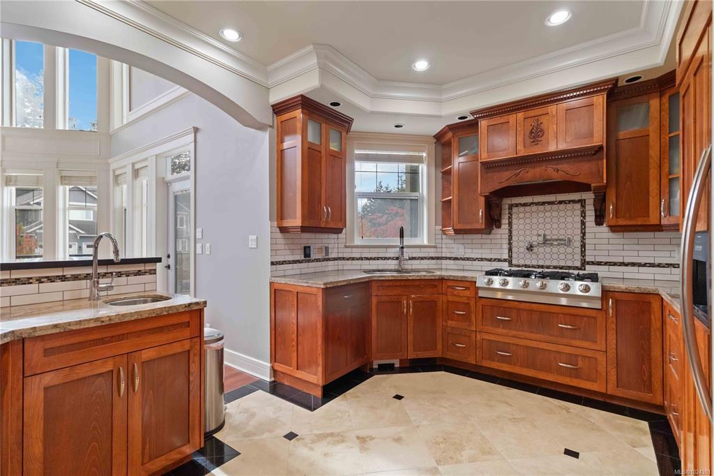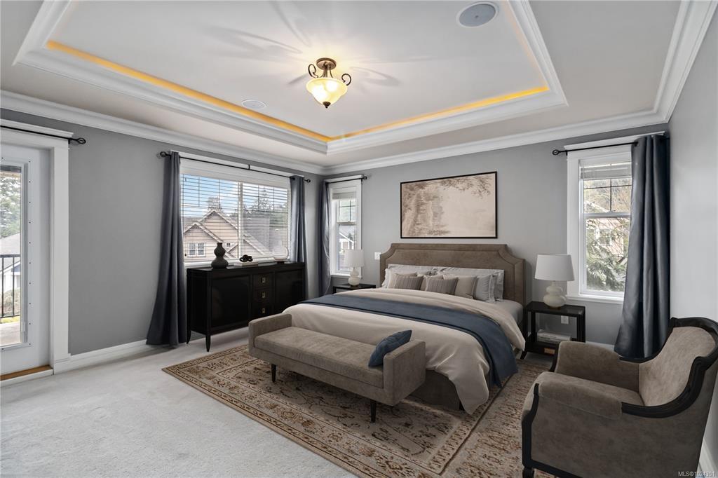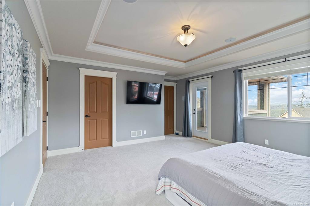 Open House Sat Jan 31, 1-3PM. Explore this executive home on Bear Mountain, a testament to quality craftsmanship & great value in today's market. Custom-built by the original owner, this property is nestled on a tranquil cul-de-sac. Enter through a grand entrance that sets the tone for the entire home. The Great Room with its two-story windows seamlessly flows into a chef's kitchen. Main floor also features an office, powder room, dining, & two bedrooms, each with a private balcony & ensuite. Up the loft-style landing we find an additional bedroom & a large primary suite, complete with a walk-in closet, 6-piece ensuite, & a private balcony overlooking the treetops. The lower level includes a 3-car garage, ideal for recreational storage, and includes a well-appointed 2-bedroom suite. The suite, with its high ceilings & natural light, offers versatility for tenants or family. Enjoy the Bear Mountain lifestyle with world-class golf, hiking, tennis, biking, & dining nearby.