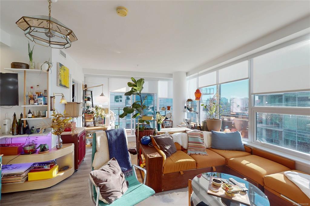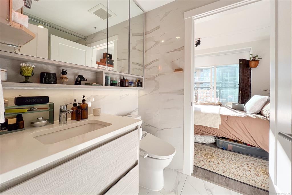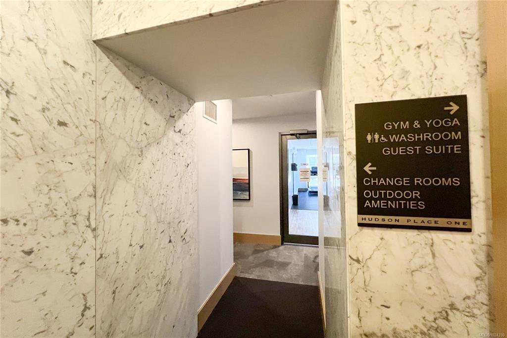 Welcome to Hudson Place One, the 25-story gem of the Victoria skyline. Located in the heart of downtown, everything you need is just steps away, from public transit and groceries to restaurants, coffee shops, and much more. Enjoy an array of amenities, including concierge service, fitness center, yoga studio, infrared sauna, game lounge, business center, guest suite, dog park, and more! This two bedroom one bathroom concrete, air-conditioned home has TWO balconies overlooking city's view. Open kitchen with stainless steel appliances, quartz countertops, and sleek cabinetry with ample storage space. In-suite laundry. The spa-like bathrooms offer a deep soaker tub and heated tile floors. Welcome to a life of comfort and convenience at 777 Herald St. come make it your DESTINED home!