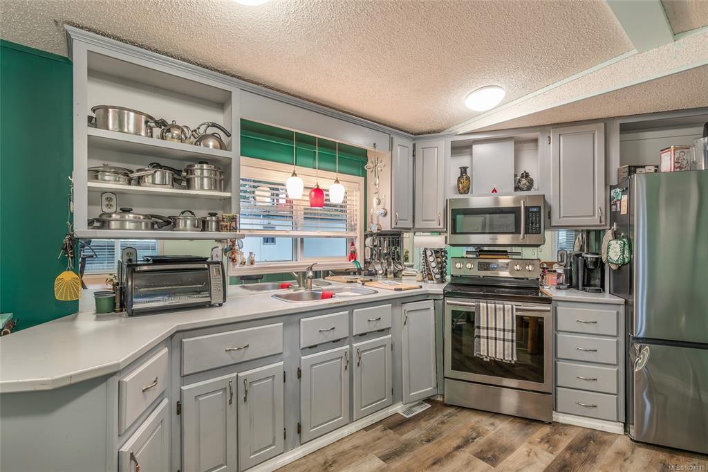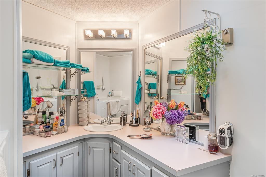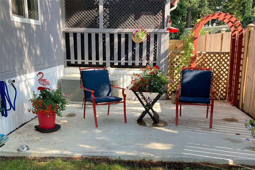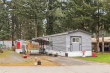 This spacious, modern modular home in the friendly 55+ Timberlands mobile home park offers a calm, low maintenance place to land. Think of it as your base for easy island days. A bright, open living area with large windows and built-in storage connects to an updated kitchen with stainless appliances and a dining area with more storage. The walk through laundry leads to a covered, enclosed deck for morning coffee or quiet afternoons. The plan keeps privacy in mind, with the primary suite and ensuite at one end and a 2nd bedroom and full bath at the other. Updates include new kitchen fan and lighting, new toilets and bathroom sink, newer washer and dryer, and a ductless heat pump for year round comfort. Outside, enjoy a low maintenance yard with two concrete patios, garden beds, carport and storage shed. Walking trails, nearby Nanaimo and Ladysmith amenities, plus a restaurant and pub next door keep life close and connected. Reach out whenever you’re ready to arrange a private viewing.