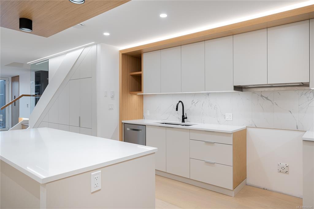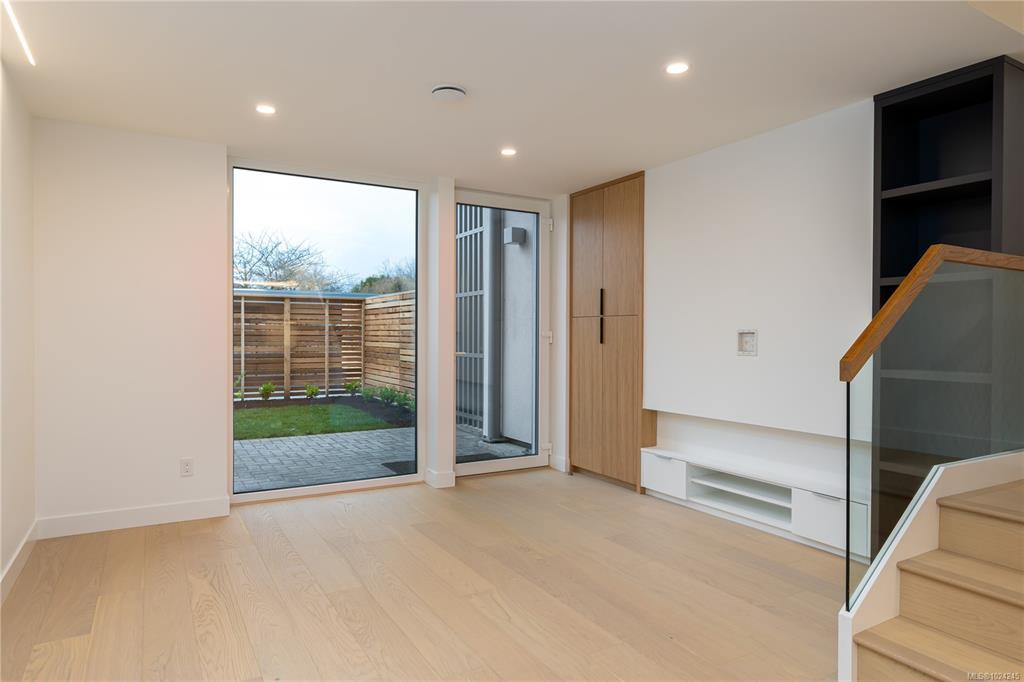 Introducing sustainable boutique luxury living redefined. 1417 May Street is architecturally designed by Award Winning Cascadia Architects, constructed by P. Gosgrave Construction and interior design by Spot Design Company. Sleek modern lines meet functional design with each unit featuring custom cabinetry throughout to maximize storage, engineered oak plank flooring, Bosch appliance package, & HRV. Warm wood tones mixed with crisp whites provide the perfect balance and emphasize the natural light throughout. The sloped lot fronts onto Moss Rocks Park with views of the park and provides privacy for the front units & the lower units have private fenced in rear yards w/screening. A large, shared yard behind the carport is fully fenced for residents to enjoy at leisure. No detail is overlooked w/these newly constructed townhomes. A stone’s throw to iconic Dallas Rd & beach, Fairfield Plaza, and a short distance to all that downtown Victoria has to offer.