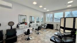 The site features two attached buildings: a 2,070 sq ft bookstore/retail space with added flexibility including a living room area and bathroom with shower, plus a newer (~5-year-old) 772 sq ft hair salon with a universal accessible bathroom. Fire sprinklers serve both buildings for added safety and peace of mind.