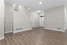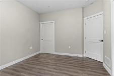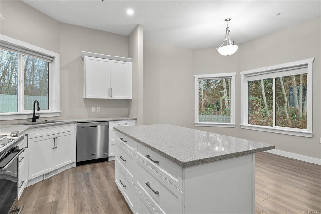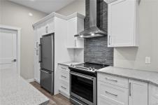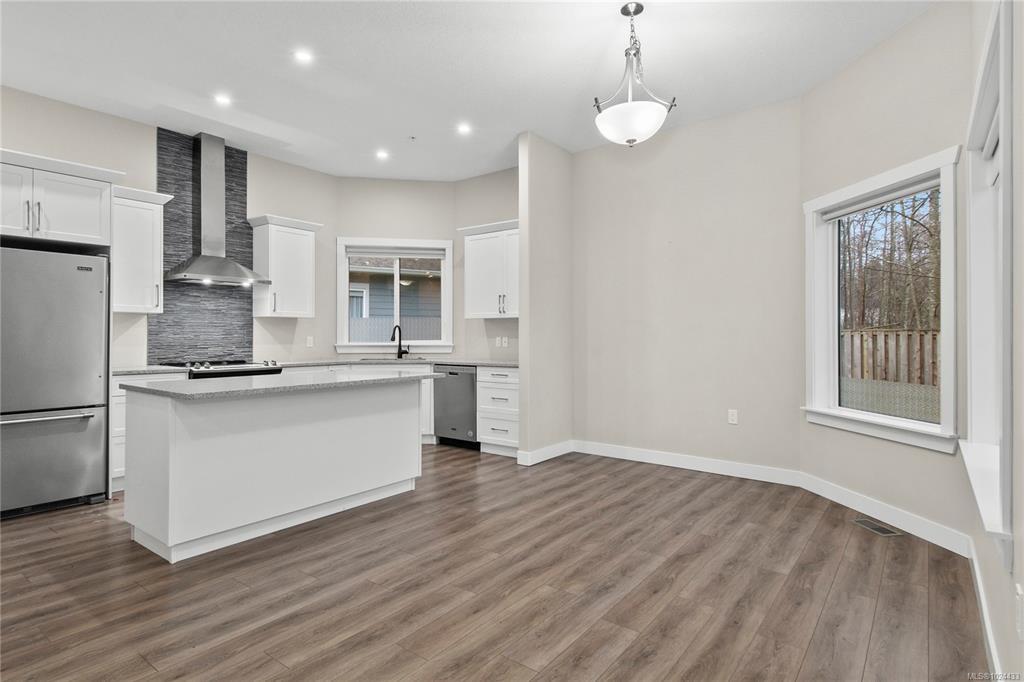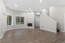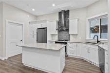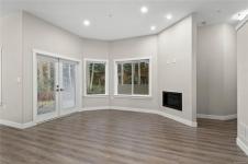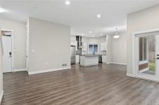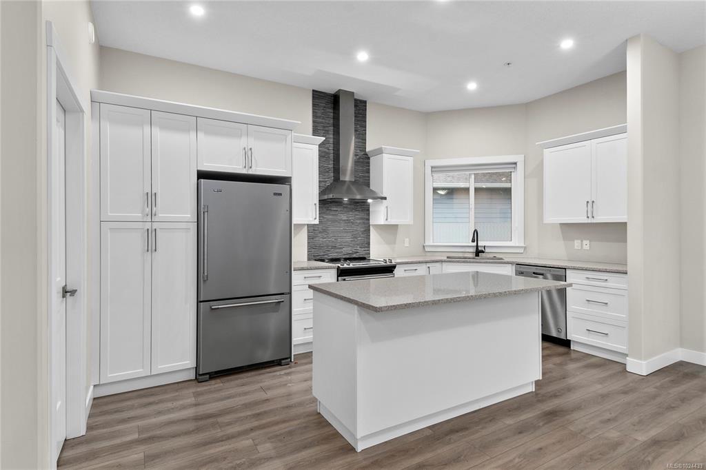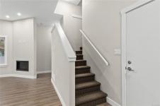 Welcome to this newer, thoughtfully designed townhome perfectly situated in an ideal location backing onto peaceful green space. Enjoy the rare combination of privacy and convenience, with nature at your doorstep and everyday amenities just minutes away. Inside, the home offers modern efficiency and comfort with a heat pump for year-round heating and cooling, hot water on demand, and a cozy gas fireplace that anchors the main living area. The open-concept layout is bright and functional, ideal for both everyday living and entertaining. The main floor hosts the primary bedroom with a walk-in shower and walk-in closet. You will love quartz countertops throughout, easy care laminate floors, and a single garage. This low-maintenance home delivers contemporary style, energy efficiency, and a tranquil setting—an exceptional opportunity for those seeking modern living in a prime location. Strata allows all ages, and one cat or dog.