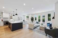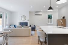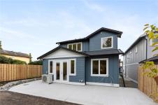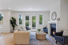 Step into this beautifully crafted 4-bed, 4-bath home that seamlessly combines modern design with practical living. Every detail has been curated for comfort, efficiency, and elegance. The heart of the home is the gourmet kitchen, stainless steel appliances, stunning quartz countertops. Engineered hardwood flooring & a cozy gas fireplace, creating a warm and inviting atmosphere. A heat pump ensures year-round comfort, while a backup generator adds peace of mind during outages.Enjoy the private, fenced walkout backyard with an irrigation system. The luxurious bathroom include a soaker tub and walk-in shower, offering spa-like retreats right at home. Bonus features like a handy crawl space and a one-bedroom legal suite with its own laundry make this home as functional as it is beautiful. Located just minutes from Uptown Center, Tillicum Mall, and Mayfair Mall, this home puts convenience at your doorstep. This property delivers the perfect blend of style, practicality and location.