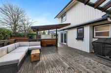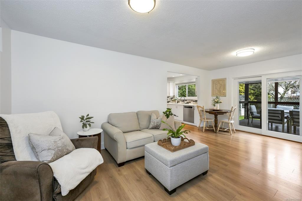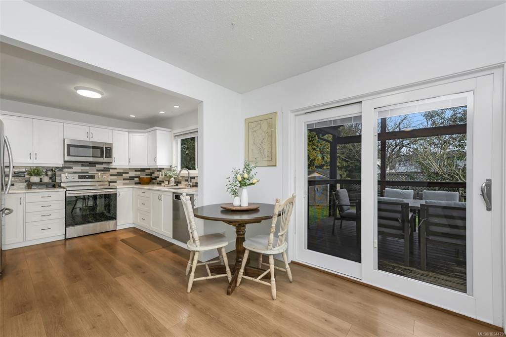 Welcome to this beautifully maintained 4BR, 3BA home tucked away in Sidney, offering flexible living spaces and a thoughtfully designed layout for everyday comfort and entertaining. Fresh neutral finishes, including new paint and flooring, complement the inviting main level featuring a spacious living and dining area, updated kitchen, and adjoining family room. Step outside to a private, green backyard with covered and open deck space plus a hot tub - perfect for extending your living space outdoors. The main-level primary BR includes a 3-pc ensuite with direct backyard access, providing an accessible and convenient main-floor living option, along with a 2nd BR, full bath, and double garage. Upstairs offers two additional BR's, full bath, laundry room, and a large great room ideal for a media space, secondary living area, or grand bedroom. With ample parking, a fully fenced yard, and just a short stroll to the ocean and Van Isle Marina, this home delivers the best of Sidney living.