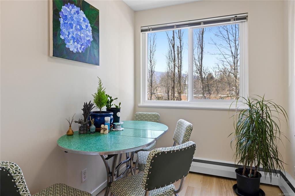 This well-cared-for one-bedroom corner unit offers a fantastic opportunity for first-time buyers or investors. Ideally located near VIU, NRGH, Buttertubs Marsh, and Bowen Park, this home combines convenience with modern comfort. Inside, you'll find all-new flooring throughout and a fully updated four-piece bathroom. The functional kitchen features two appliances, a stylish backsplash, and white cabinetry. The bright living room opens onto a covered deck, perfect for enjoying your morning coffee. An in-unit storage room provides added convenience. The pet-friendly complex allows up to two cats OR one dog (max 50 lbs). For more information, see the 3D tour, video and floor plan. All data and measurements are approx. and must be verified if fundamental.