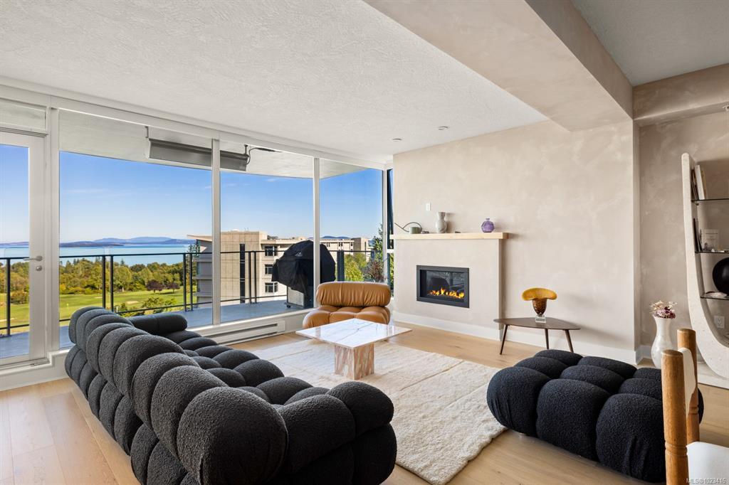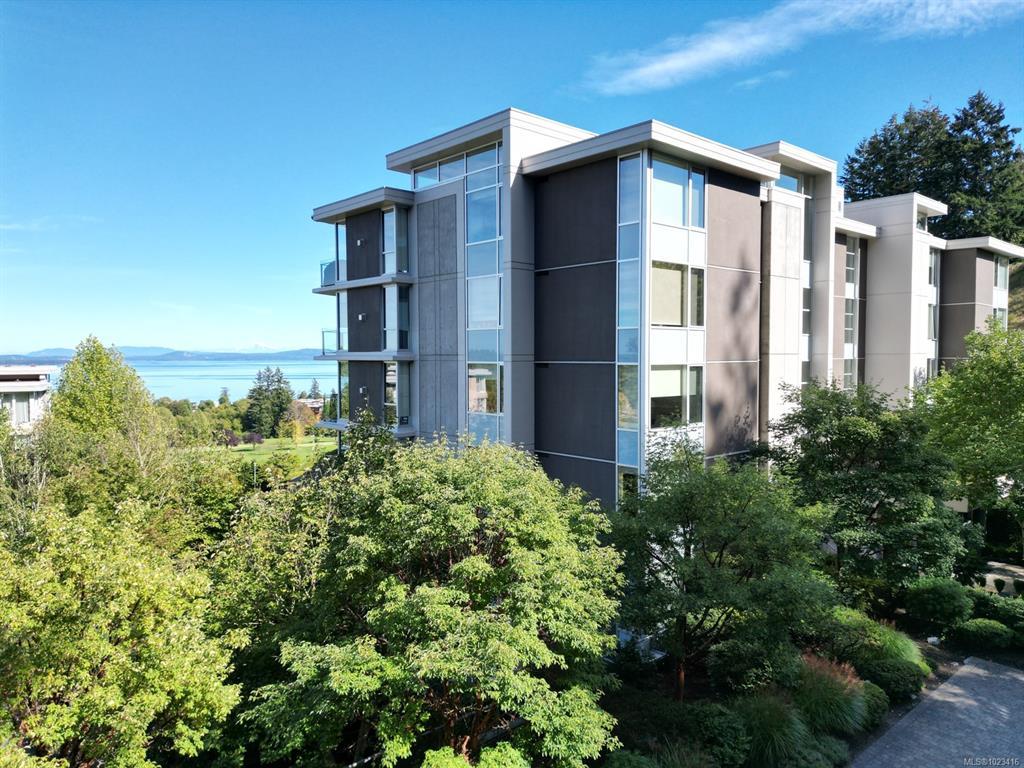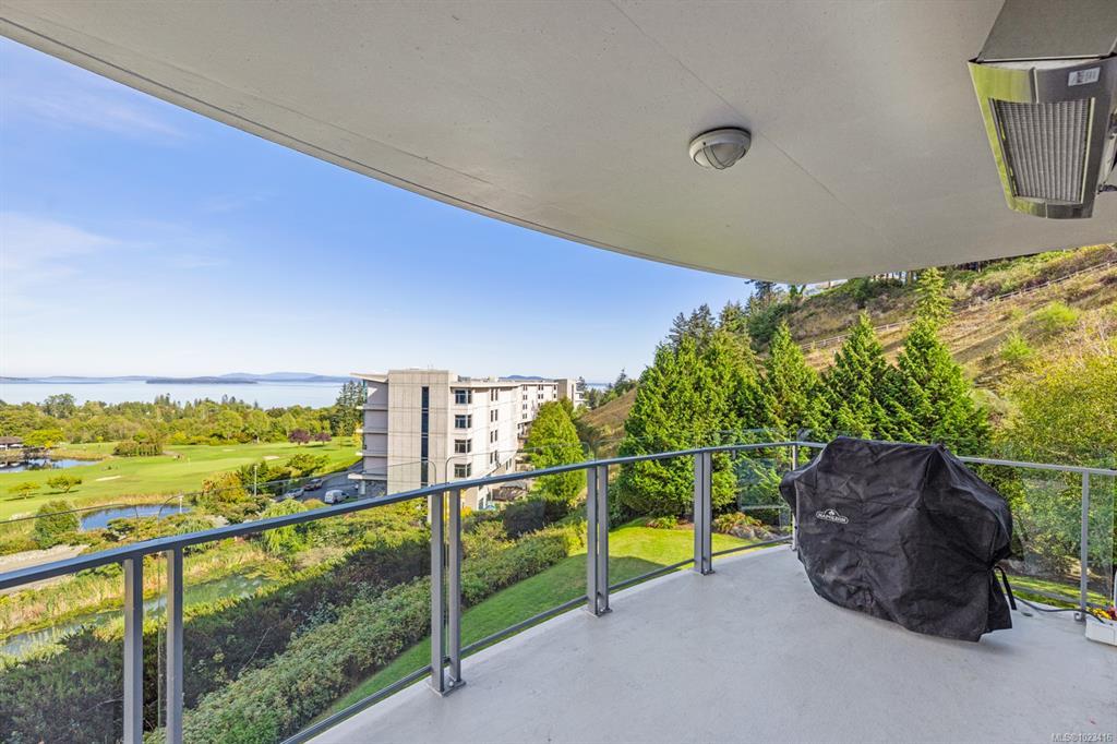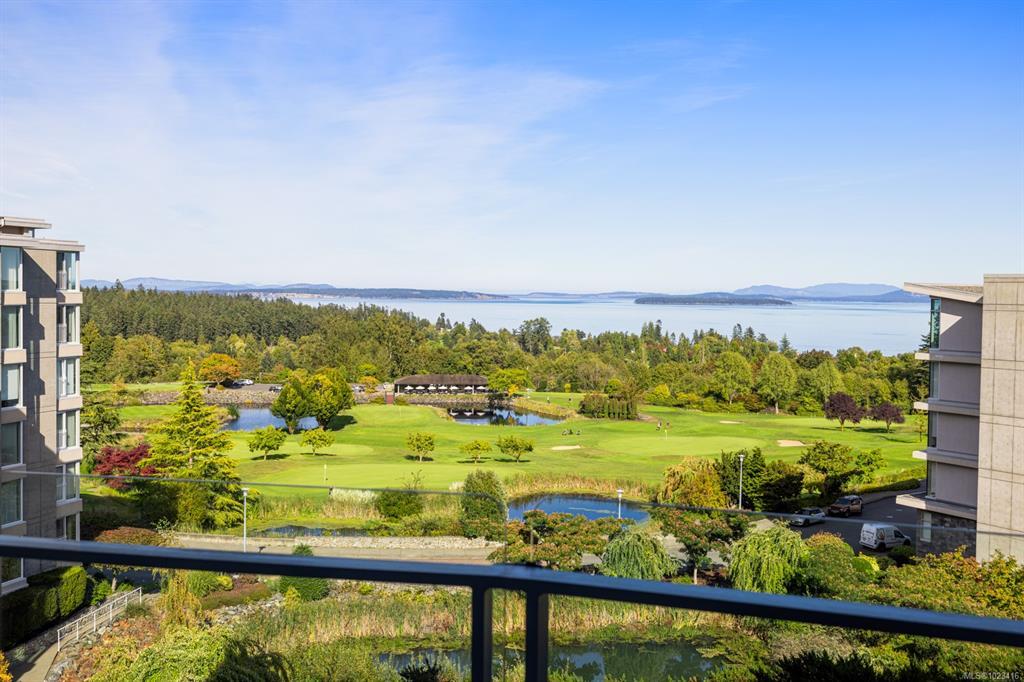 Welcome to "Ridge View", set against a backdrop of stunning natural beauty. Nestled in the prestigious seaside community of Cordova Bay, this 2-bedroom plus den residence, crafted by the esteemed Jawl Development, offers panoramic views of the Salish Sea, Gulf Islands, and distant mountains from every expansive window. A refined, timeless design features white oak flooring, a gourmet kitchen with top-of-the-line Wolf and Subzero appliances, quartz countertops, a spacious laundry room, and ample storage. The all-season balcony, complete with a heater, invites you to entertain, relax, and barbecue while taking in the ever-changing colours of the horizon from dawn to dusk. Ideally located just steps from the shops at Mattick's Farm, two premier golf courses, sandy beaches, and picturesque walking trails, this home also includes two parking spaces and a dedicated EV charger. All this, just 15 minutes from downtown, the airport, ferries, and world-class amenities.