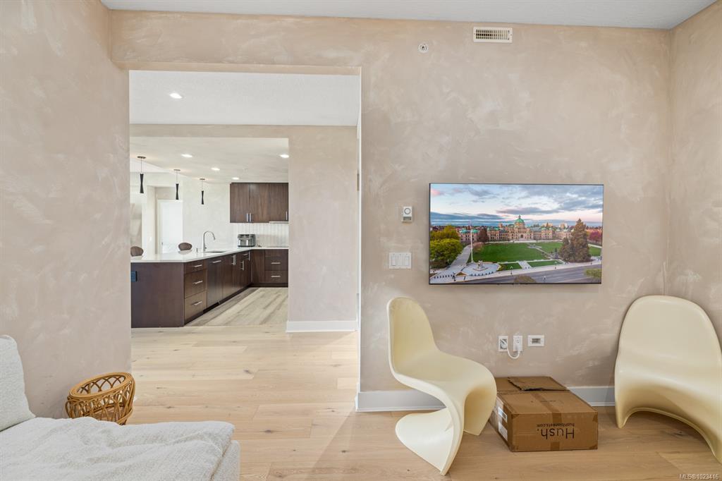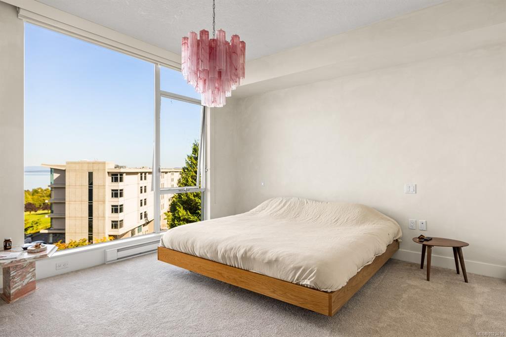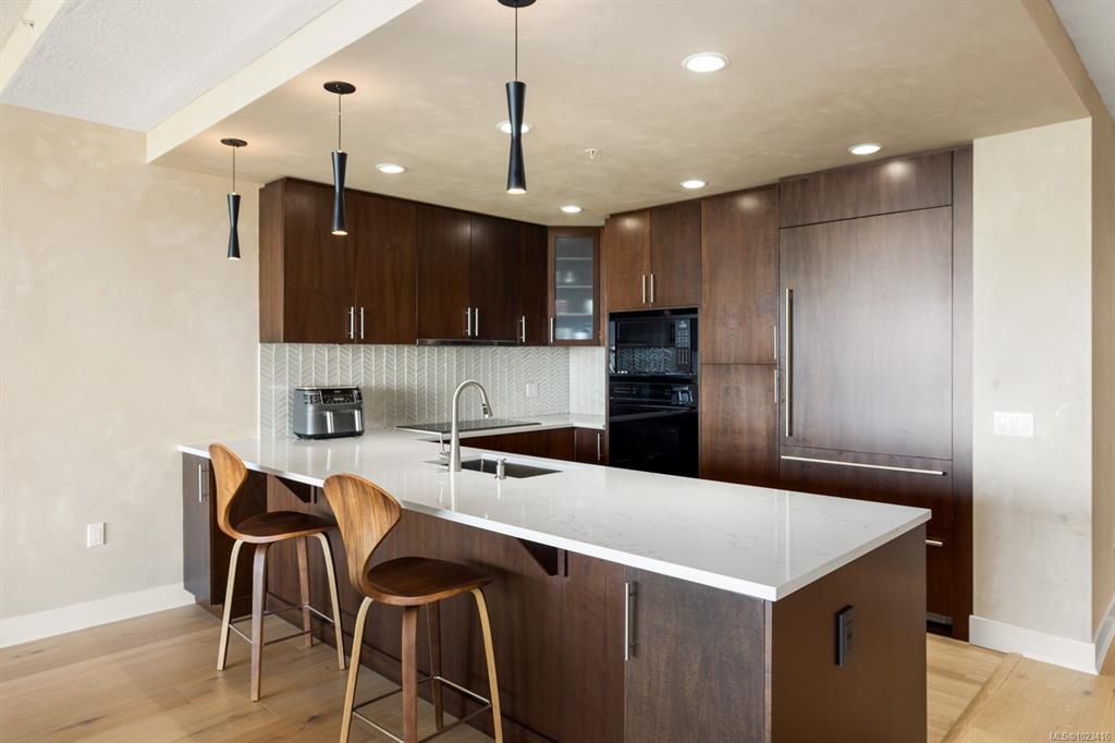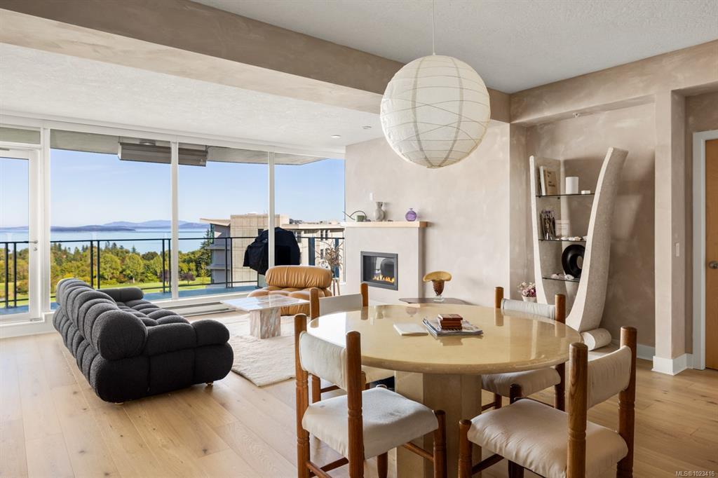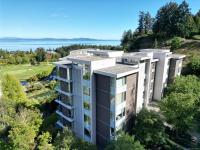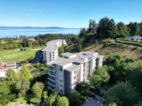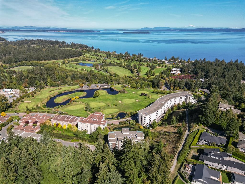 Welcome to "Ridge View", set against a backdrop of stunning natural beauty. Nestled in the prestigious seaside community of Cordova Bay, this 2-bedroom plus den residence, crafted by the esteemed Jawl Development, offers panoramic views of the Salish Sea, Gulf Islands, and distant mountains from every expansive window. A refined, timeless design features white oak flooring, a gourmet kitchen with top-of-the-line Wolf and Subzero appliances, quartz countertops, a spacious laundry room, and ample storage. The all-season balcony, complete with a heater, invites you to entertain, relax, and barbecue while taking in the ever-changing colours of the horizon from dawn to dusk. Ideally located just steps from the shops at Mattick's Farm, two premier golf courses, sandy beaches, and picturesque walking trails, this home also includes two parking spaces and a dedicated EV charger. All this, just 15 minutes from downtown, the airport, ferries, and world-class amenities.