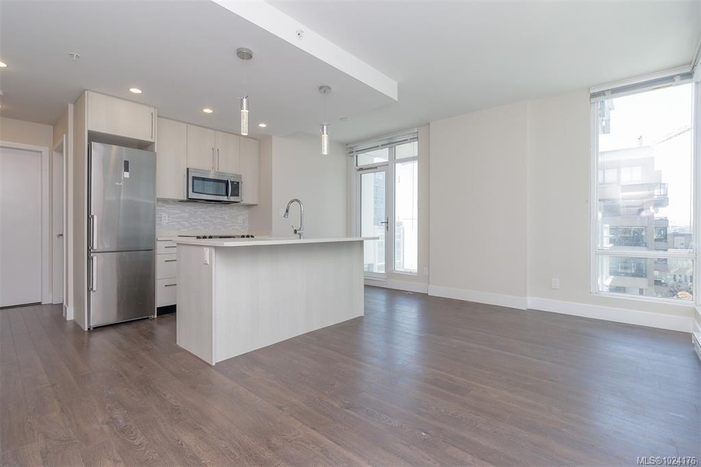 Price to sell! Located in a modern 2013 steel and concrete building in the heart of downtown Victoria, this immaculate 8th-floor 2-bedroom, 1-bathroom home shows like new. The bright, efficient floor plan features high-quality finishes throughout, including quartz countertops, mosaic tile backsplash, European-style cabinetry, and stainless steel appliances. Enjoy true walk-everywhere convenience with Cook Street Village, downtown shopping, restaurants, and amenities just steps away. The unit also includes secure underground parking, bike storage, a separate storage locker, and a brand-new in-suite laundry machine. Large windows provide abundant natural light, creating a warm and inviting living space ideal for professionals, downsizers, or investors. A well-managed, pet-friendly building adds further appeal and long-term value.A fantastic opportunity to own a stylish home in downtown Victoria and enjoy everything the city has to offer.