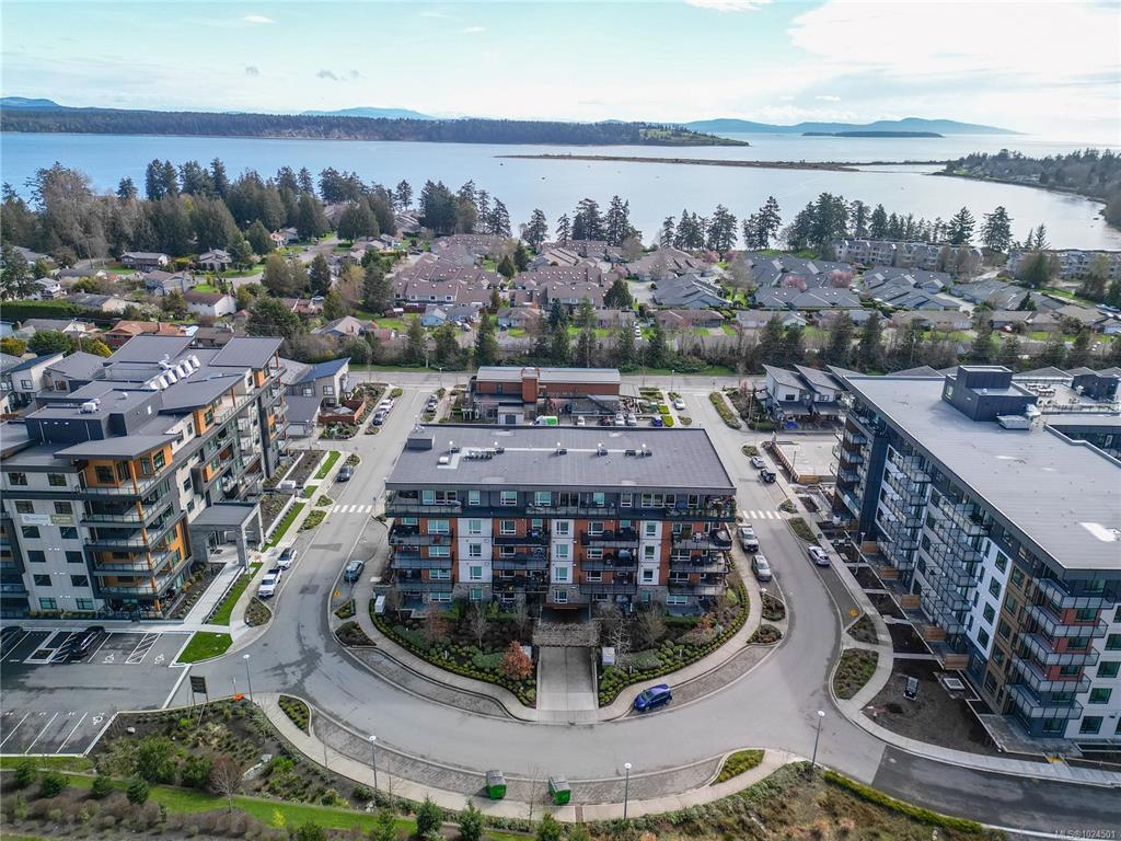 Welcome to The Arbutus—a like-new 2019-built 4th floor unit in Saanichton. This bright 2 Bed/2 Bath home offers an excellent floor plan with bedroom separation, walk-in closets & full ensuites in both bedrooms. Primary ensuite features heated tile floors. Open-concept Living Room/Dining Room/Kitchen boasts 9’ ceilings, triple-glazed soundproof windows, and natural gas fireplace. Chef-inspired kitchen with stainless steel KitchenAid appliances, gas range, quartz counters and plenty of storage. In-suite laundry with gas dryer, secure underground parking with new EV charging infrastructure, storage locker and bike storage included. Pet friendly building – 2 dogs or 2 cats, no size restriction. Still under 2-5-10 New Home Warranty. Ideally located mins to Sidney, ferries, airport and easy commute to Victoria. Marigod Café, Pharmacy and Family Clinic Steps away. Enjoy the nearby & Lochside Trail—perfect for cycling and jogging. A fantastic opportunity in a prime Central Saanich location.