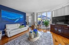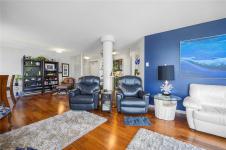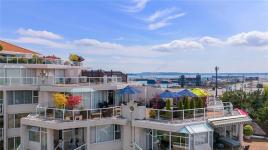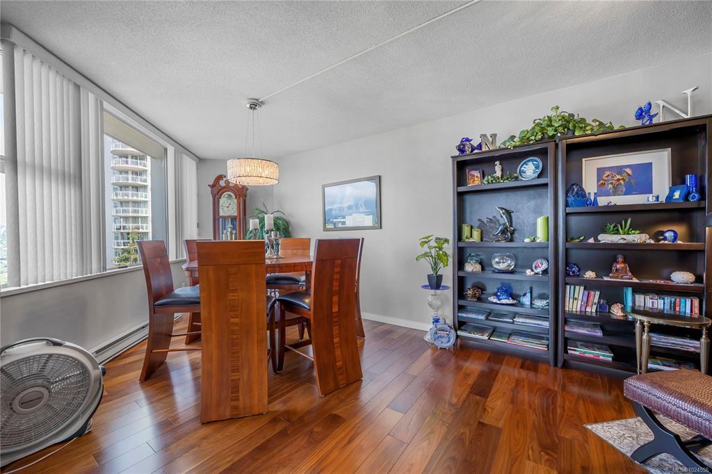 Experience luxury living in this stunning 2 bed, 2 bath 5th floor penthouse condo in the prestigious Gabriola building at Cameron Island, nestled in the heart of downtown Nanaimo. Spanning over 1,700 sq ft of refined interior space, this home offers views of the ocean, city, & mountains through floor-to-ceiling windows & from the expansive 1,000 sq ft private patio. Inside, enjoy rich hardwood & tile flooring, granite countertops, & sleek, newer cabinetry that blends functionality with elegance. The open-concept layout seamlessly connects the living, dining, & kitchen areas, creating a bright & inviting atmosphere. The spacious primary suite features a luxurious ensuite & a walk in closet dressing space. With 2 underground parking spaces & large storage room. With unbeatable walkability to the waterfront, shopping, restaurants & entertainment this exclusive penthouse offers the best of west coast living. 1 Dog or Cat friendly (Max 25 lbs). All data is approximate and to be verified.