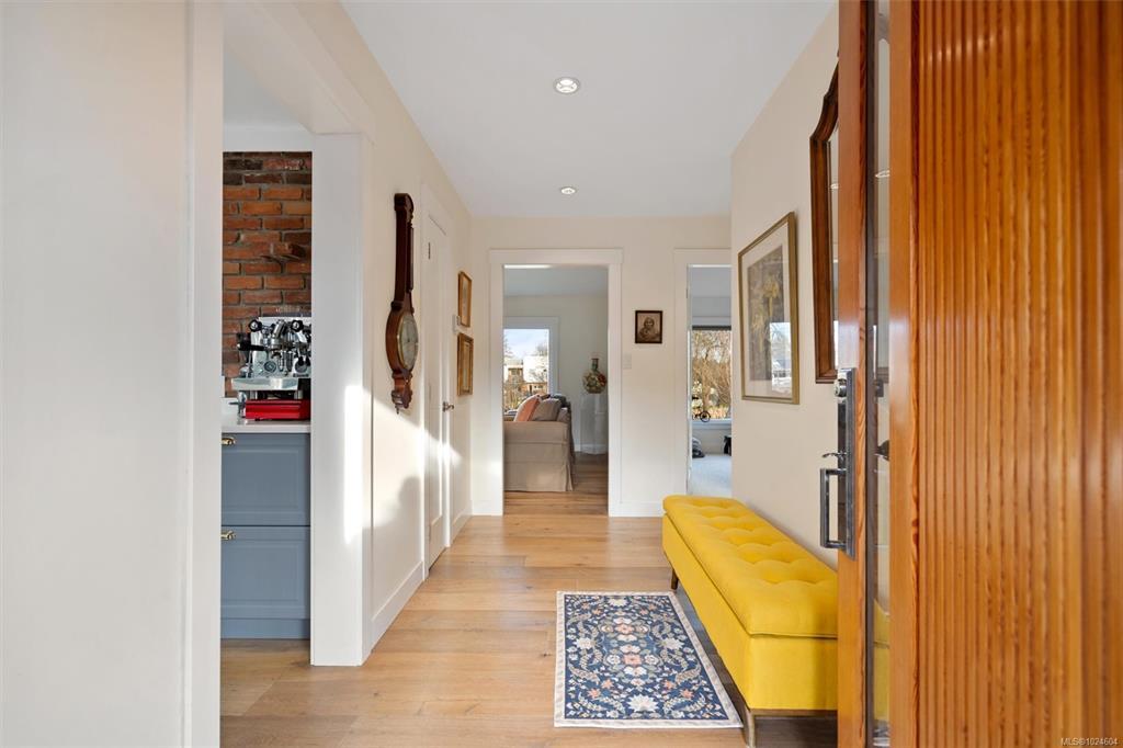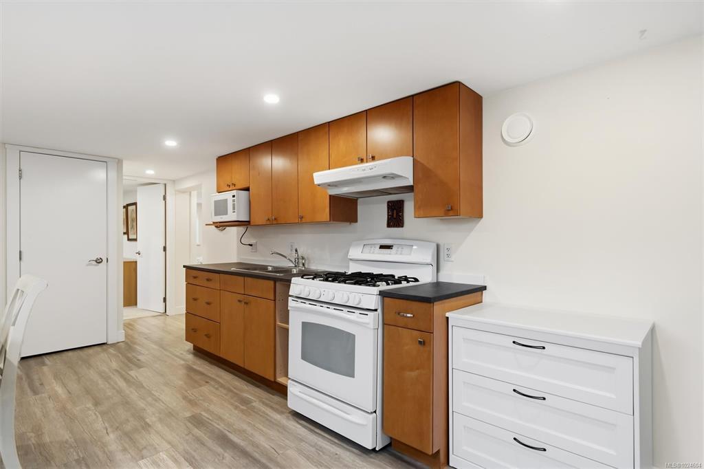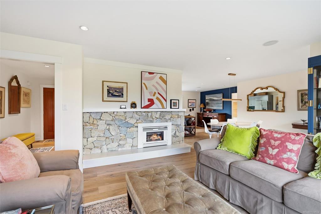 Welcome to this charming coastal retreat, tucked away on a quiet beachfront street overlooking Mystic Pond & its tranquil bird sanctuary. Located in Cadboro Bay, this home offers nearly 2,500 square feet of comfortable main-level living. Upstairs, the bright primary bedroom features its own ensuite and peaceful pond views. The open-concept kitchen & dining area create an inviting space for everyday living & entertaining, while the sun-filled livingroom offers a cozy fireplace perfect for relaxing at the end of the day. The lower level provides additional bedrooms, a second kitchen & a generous living area, offering flexibility for guests or extended family. The garage has been converted into a home gym and includes a convenient powder room. Outside, enjoy the sunny rear deck, green house, raised garden beds & expansive yard that gently leads to Mystic Pond. Just a short stroll brings you to Cadboro Bay Beach & Cadboro Bay Village with shops, cafés & everyday amenities at your doorstep.