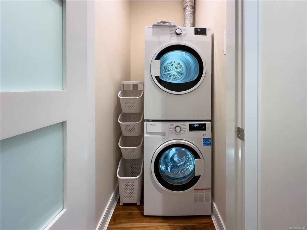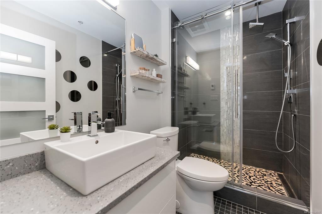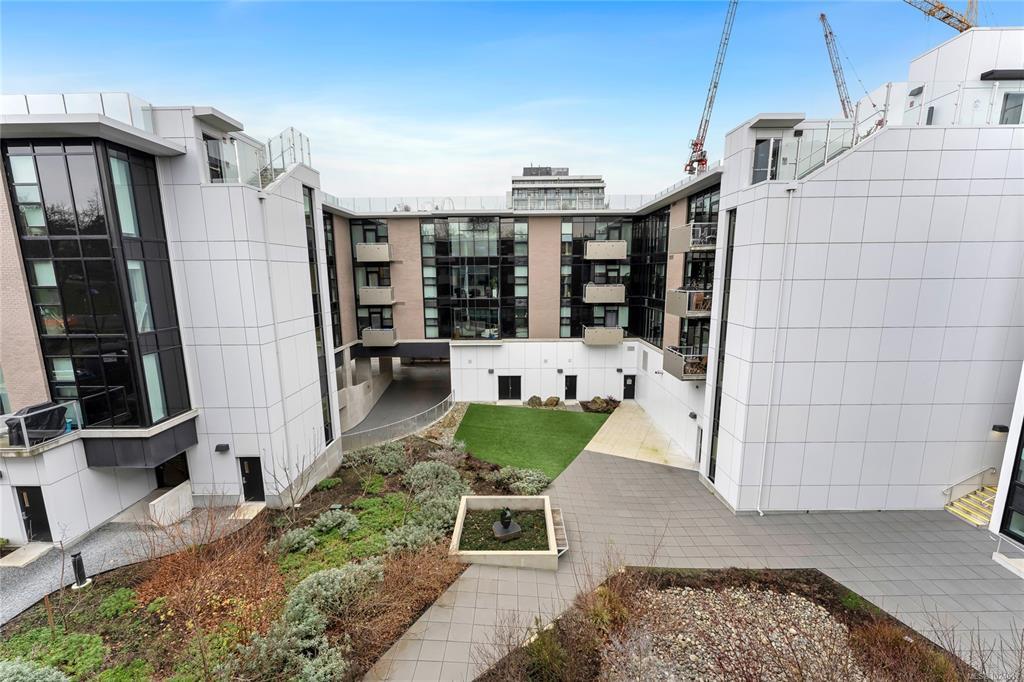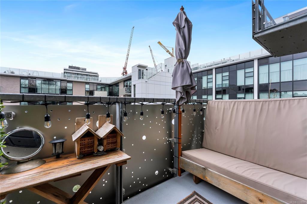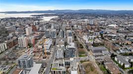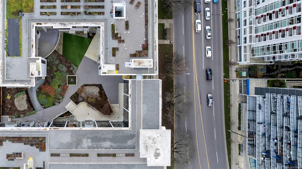 Quiet, light, and a SOUTH FACING layout that works. Welcome to The Wade on Fernwood’s downtown edge. A 2021 steel and concrete low rise with new home warranty coverage, built for calm downtown living. As one of the best situated units it faces landscaped gardens, so your backdrop is fruit trees and south light, not traffic. Floor to ceiling glass brightens a generous, functional open living/dining core with easy flow for everyday life and entertaining, while two separated bedrooms keep mornings private. Cook with Fisher & Paykel (gas cooktop + wall oven + dishwasher), gather at the island, then step onto the balcony with natural gas hookups. Heated tile bath, smart Lutron lighting and efficient radiant heat make it feel quietly luxurious. Add a rooftop garden plot, secure parking, storage locker, caretaker, bike rooms + wash station, and you’ll spend more time living than managing. Walk/Bike Score 97. Cook St Village, parks, groceries, cafés, transit & the ocean are close at hand