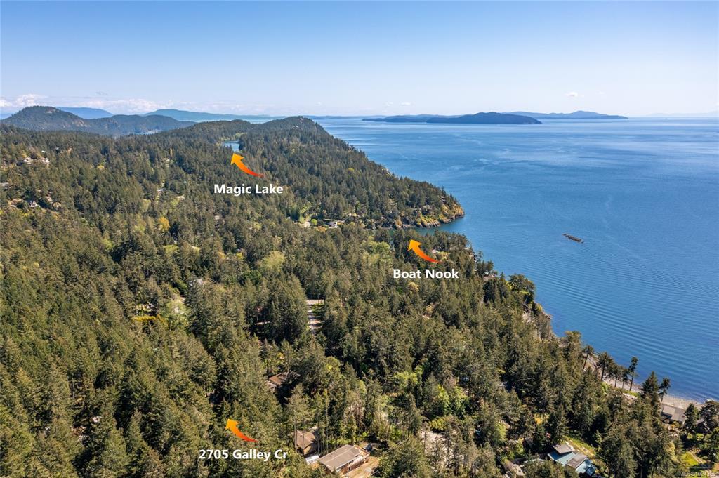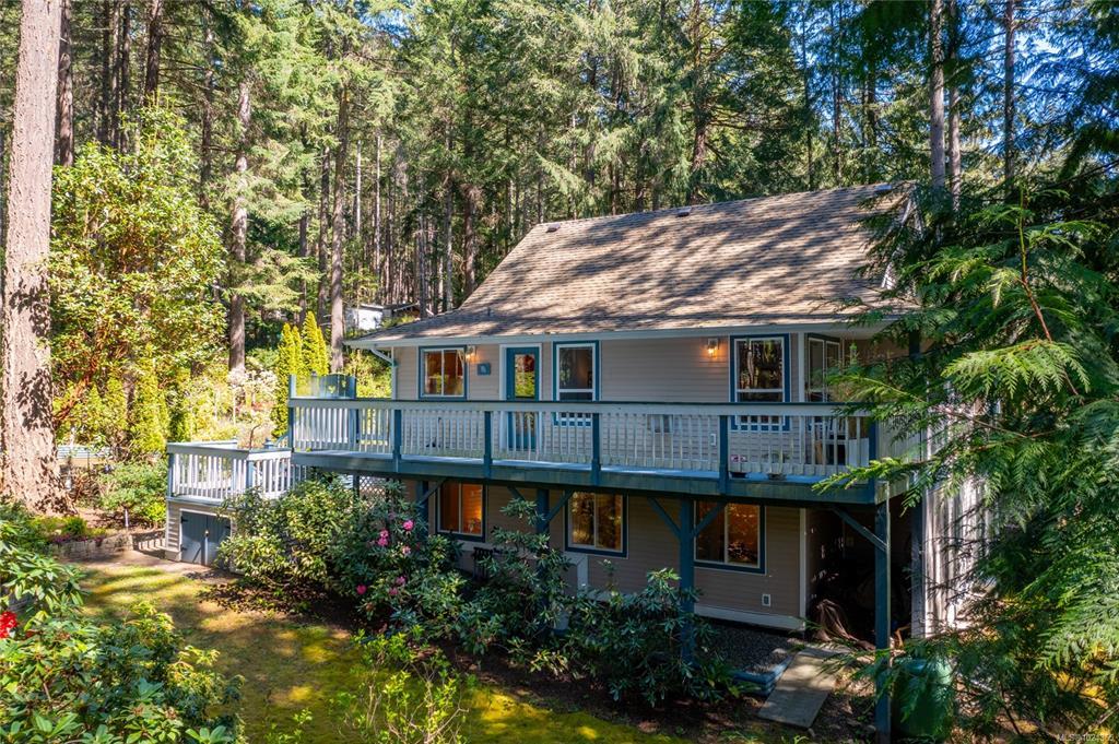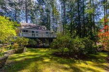 Welcome to Magic Lake Estates on beautiful Pender Island! Set on a private, fully fenced 0.41-acre lot, this well-maintained island home is 1,850 sq ft with 3 beds & 3 baths, surrounded by mature landscaping, fruit trees, & multiple garden beds with sprinkler system to satisfy that green thumb. A gated entry leads to a property that has been thoughtfully cared for inside & out. The main living area features a propane fireplace, separate dining room, & easy access to expansive decks & patio areas—ideal for outdoor living. A unique English-style teahouse adds flexible space for hobbies or quiet retreat. Located on a cul-de-sac, the home is connected to municipal water & sewer, a significant advantage over well & septic systems. Property owners in Magic Lake Estates can be members of the Magic Lake Property Owners Society and get exclusive access to moorage at Thieves Bay Marina and reduced rates at the Tennis/Pickle Ball courts. Experience Golf Island living at it's best! Welcome home!