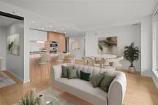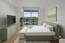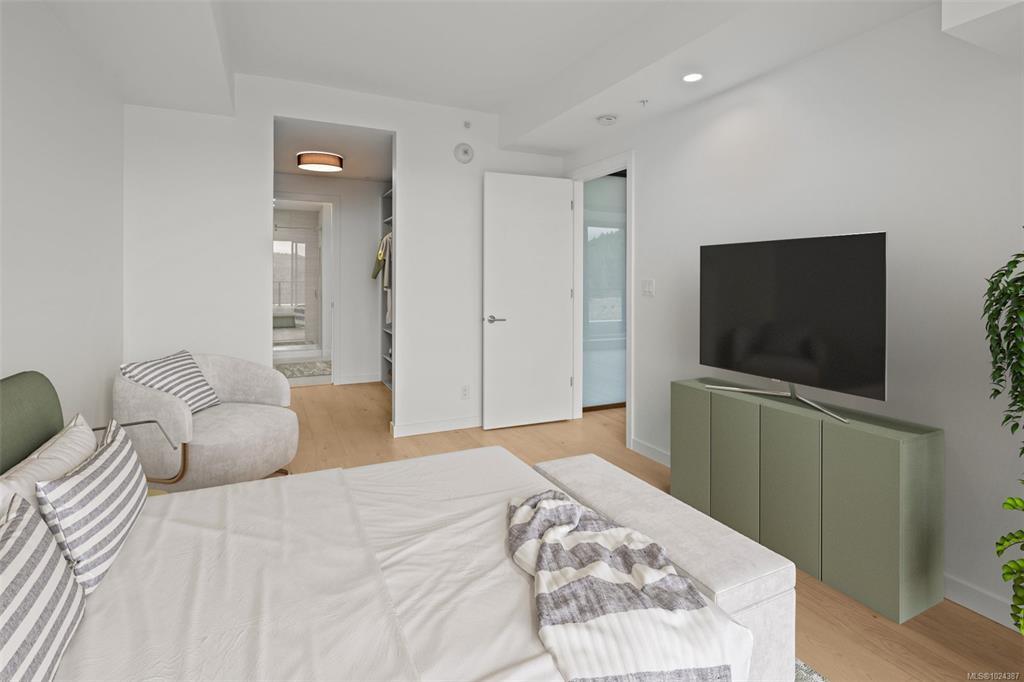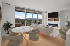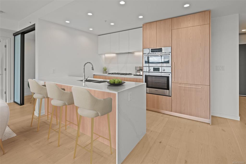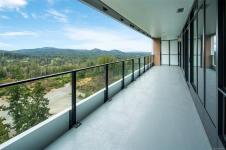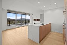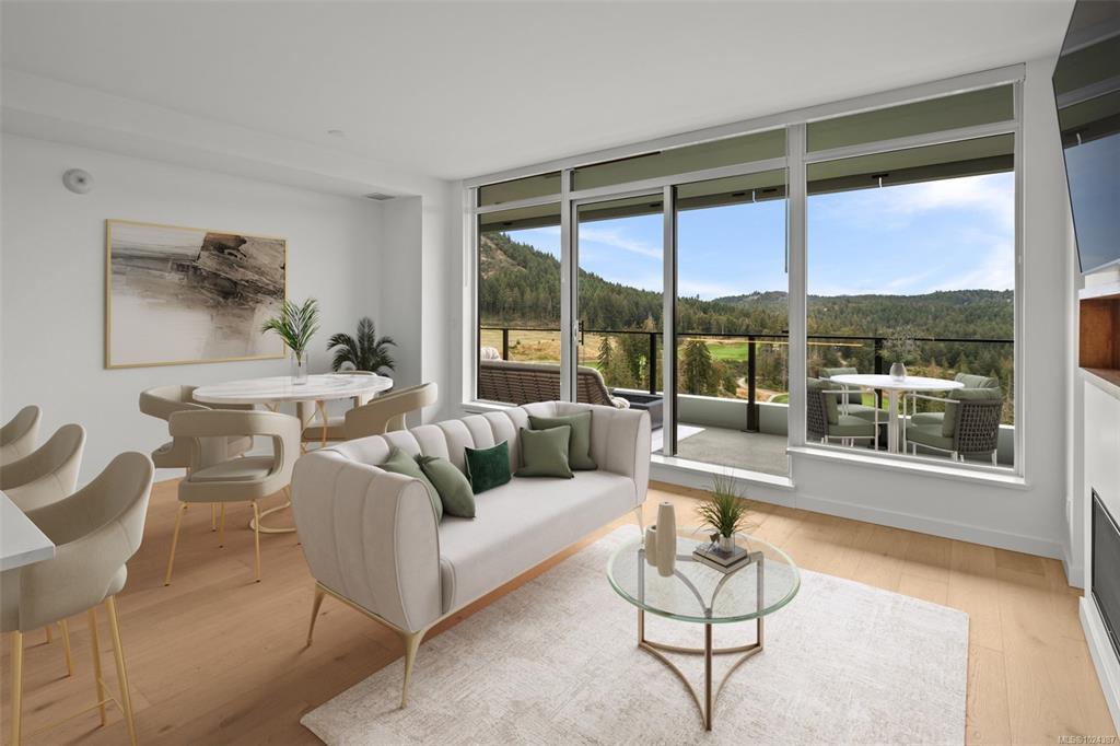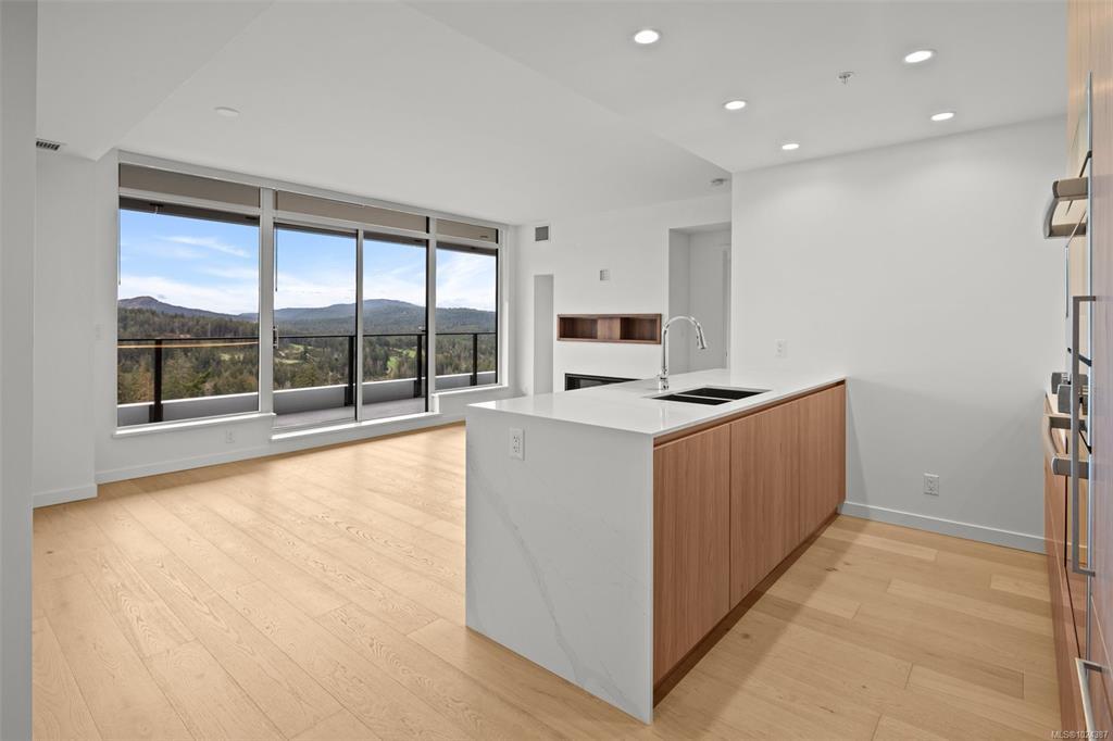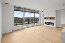 Embrace a lifestyle of elegance and adventure with this exquisite 2-bedroom and den condo in One Bear Mountain! Boasting 1150 square feet, this 13th floor open plan unit features floor-to-ceiling windows, hardwood floors and an expansive 8 by 40-foot deck creating a bright, inviting atmosphere with stunning views over the 18th fairway. With premium finishes throughout including elegant Italian cabinetry and quartz countertops, complemented by an integrated Bosch appliance package featuring a gas cooktop and wall oven. The primary suite offers a custom walk-in closet, and luxurious ensuite bath, with access to the deck. Marvel in resort-style living with exceptional amenities including a 15th-floor outdoor infinity pool with panoramic views, a state-of-the-art fitness center, yoga studio, business center, and private dining options. Enjoy easy access to breathtaking outdoor activities, from hiking to golfing, right at your doorstep.