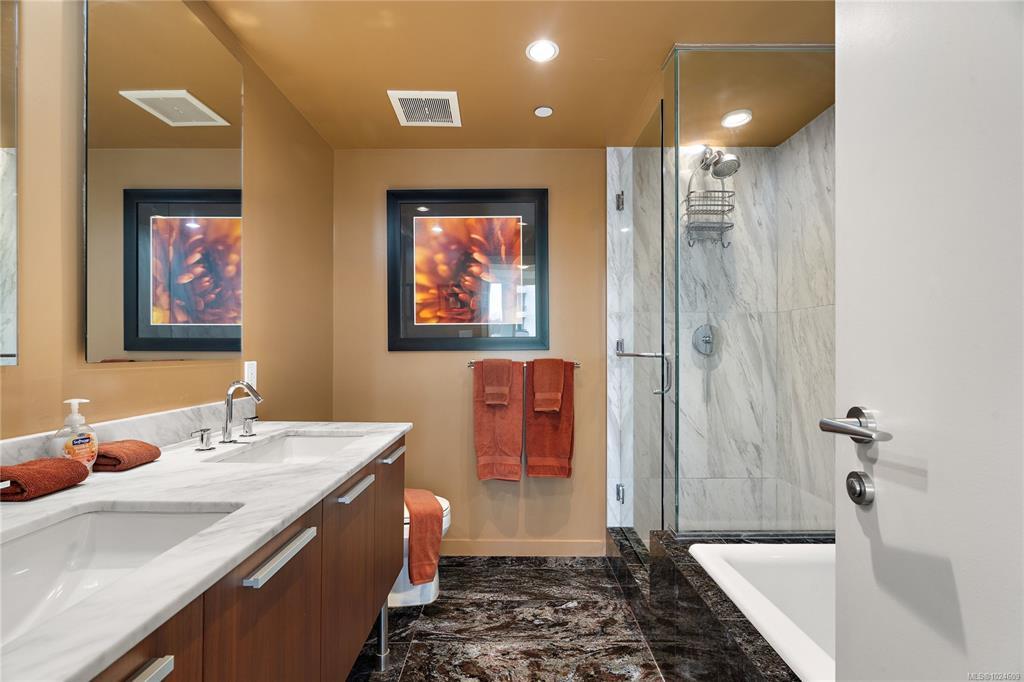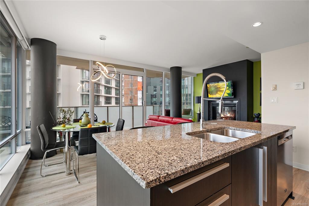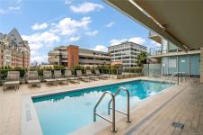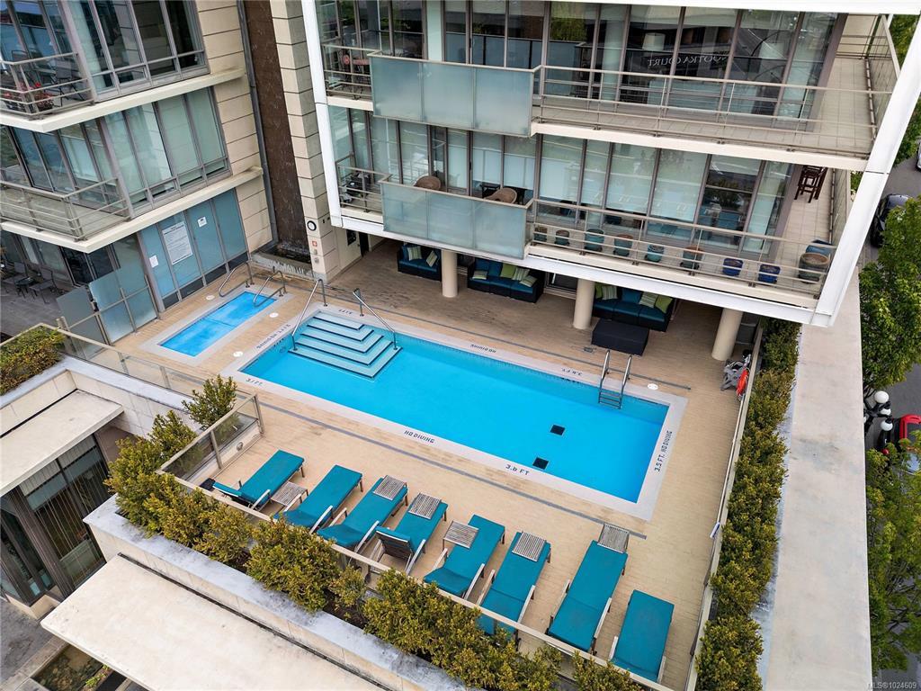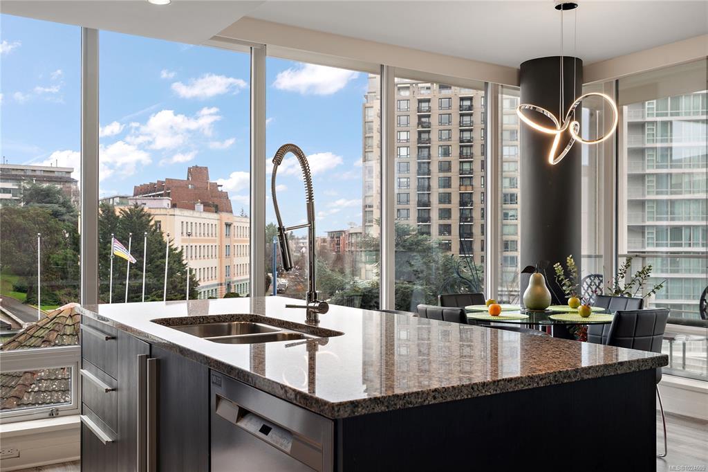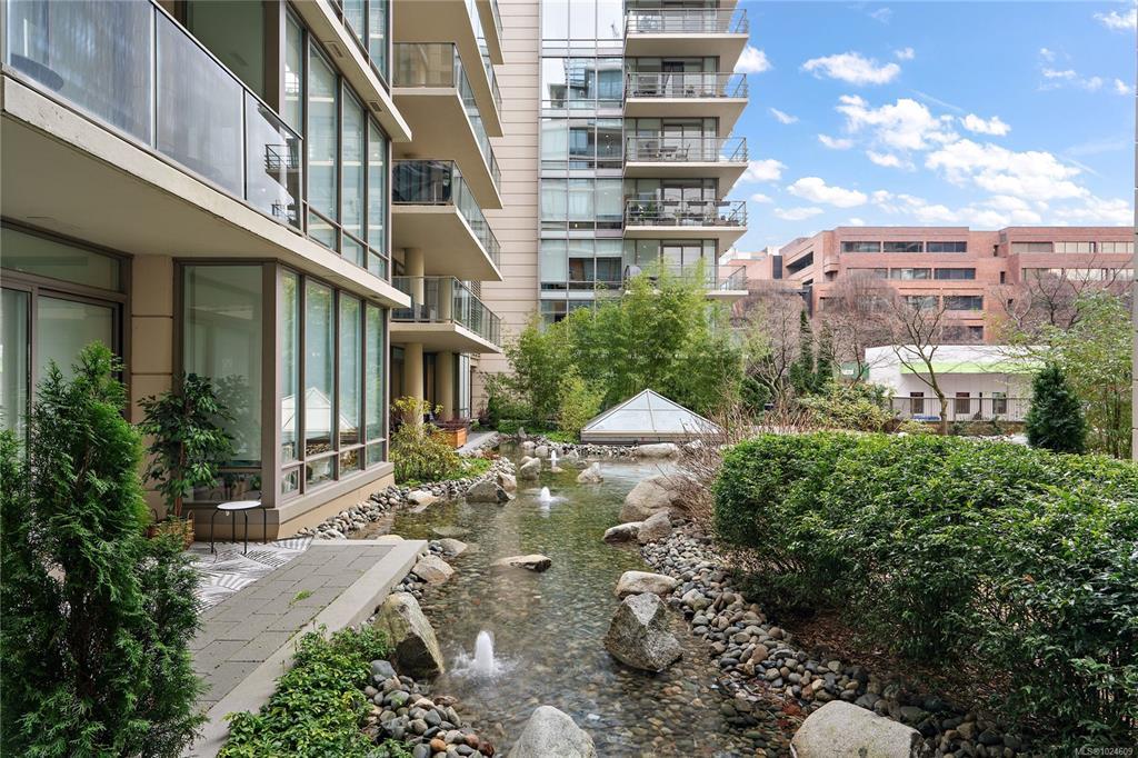 Priced to sell, this bright south-facing corner unit at The Falls offers an excellent opportunity in one of downtown Victoria’s most sought-after steel-and-concrete buildings. Located on the quieter side, the home is filled with natural light through floor-to-ceiling windows and offers city views, including the Empress Hotel. The well-designed layout features two bedrooms plus a den, two full bathrooms, and new flooring throughout. Offered fully furnished and thoughtfully equipped with furniture and kitchenware, it presents an ideal option for effortless personal use or rental. Whether for investment or downtown living, flexibility here is hard to beat. Quality finishes include granite countertops, stainless steel appliances with a gas range, in-suite laundry, and bedrooms with darkening blinds for comfort. Residents enjoy amenities including a fitness centre, pool, hot tub, secure underground parking, bike storage, and pet-friendly living, steps from Inner Harbour, dining & shopping.