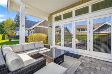 The gourmet kitchen features granite countertops, stainless steel appliances, and a generous island, flowing seamlessly into a bright living area with cathedral ceilings and hardwood floors. Outside, a private patio provides the perfect setting for both relaxation and entertaining.