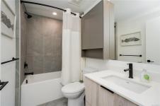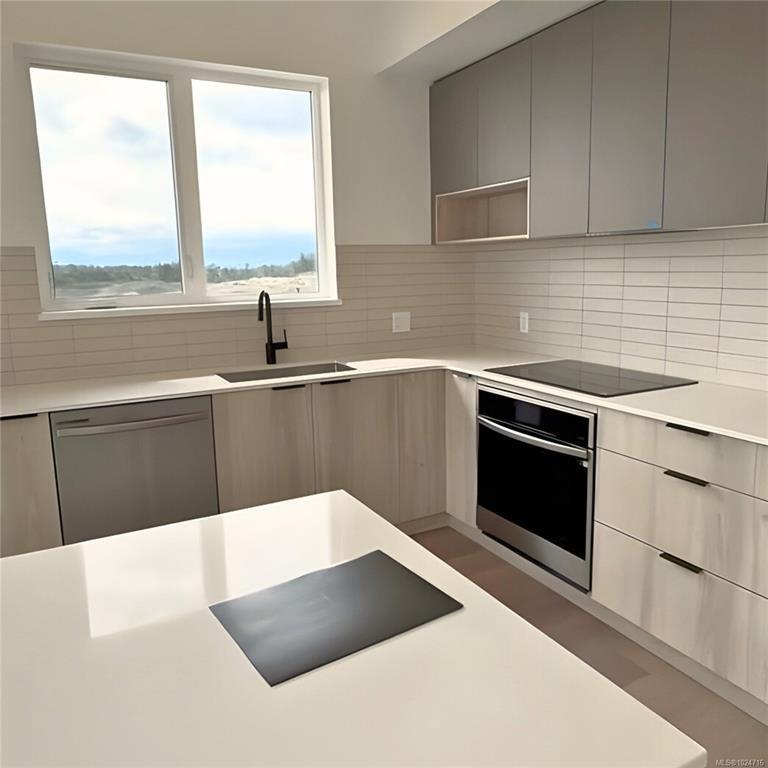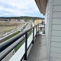 Perched on the top floor with a bright south-east exposure, this corner suite at Eliza feels instantly uplifting. High ceilings and expansive windows draw in the morning sun and frame ocean and mountain views, while elevated finishes—from stainless steel appliances to custom cabinetry and quartz countertops—create a polished, contemporary backdrop. The 2-bed, 2-bath layout flows beautifully onto a spacious deck that extends your living space outdoors. With two secure parking stalls and a pet-friendly community welcoming dogs of all sizes, convenience is built right in. The complex features wonderful amenities including a rooftop terrace, owner’s lounge, full gym, and dog wash station set in the convenient Royal Bay community with cafés, groceries, Royal Bay Secondary, and the beach just steps away—life at Eliza feels like coastal living made easy. Move-in ready, GST paid!