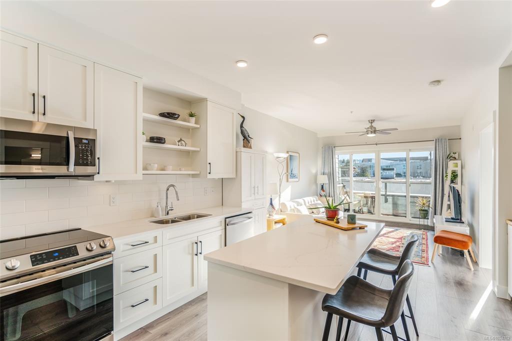 An Adorable Condo in the Heart of Downtown Parksville! You'll not find a better 'walk-to' location than this bright and inviting 681 sqft 1 Bed/1 Bath Condo in 'Oceanside Palms', a newer development with everyday conveniences right at your doorstep. This delightful Condo boasts a layout that maximizes floor space, a touch of elegance in the finishing, in-unit laundry, south-facing windows, and one parking space. Pet-friendly building with secured entry, elevator, and no age restrictions. Steps away from shopping, cafés, dining, and amenities, a short stroll to grocery stores, the oceanfront boardwalk, and Parksville’s sandy beach. The stylish Kitchen has quartz CTs, a beverage center, shaker cabinetry, an island with a breakfast bar, and stainless appls. From the Living/Dining Room, a door opens to a covered south-facing balcony with lovely views over town to Little Mountain. The Bedroom has balcony access and cheater ensuite access to the 4-pc Bath. Visit our website for more info.