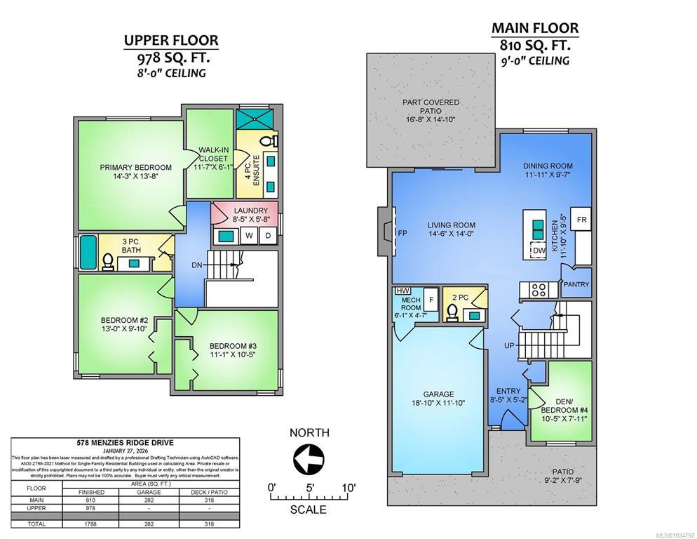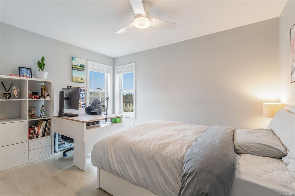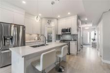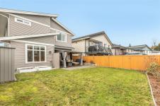 Bequtifully maintained detached duplex offering modern comfort and functional family living. This home features approximately 1,788 sqft with 3 beds plus a den and 3 baths. The bright open-concept main floor includes a contemporary kitchen with quartz countertops, stainless steel appliances, gas range, and a large island. The inviting living area features a fireplace and access to a partially covered patio. Upstairs offers a spacious primary bedroom with walk-in closet and ensuite, plus two additional bedrooms and a full bathroom. Year-round comfort is ensured with a gas furnace, air conditioning, and hot water on demand. Artificial turf enhances the low-maintenance front yard, while the fully fenced backyard provides practical outdoor space for all family to enjoy. Attached garage completes this move-in ready home close to everyday amenities. All date and measurement are approximate, please verify if important.