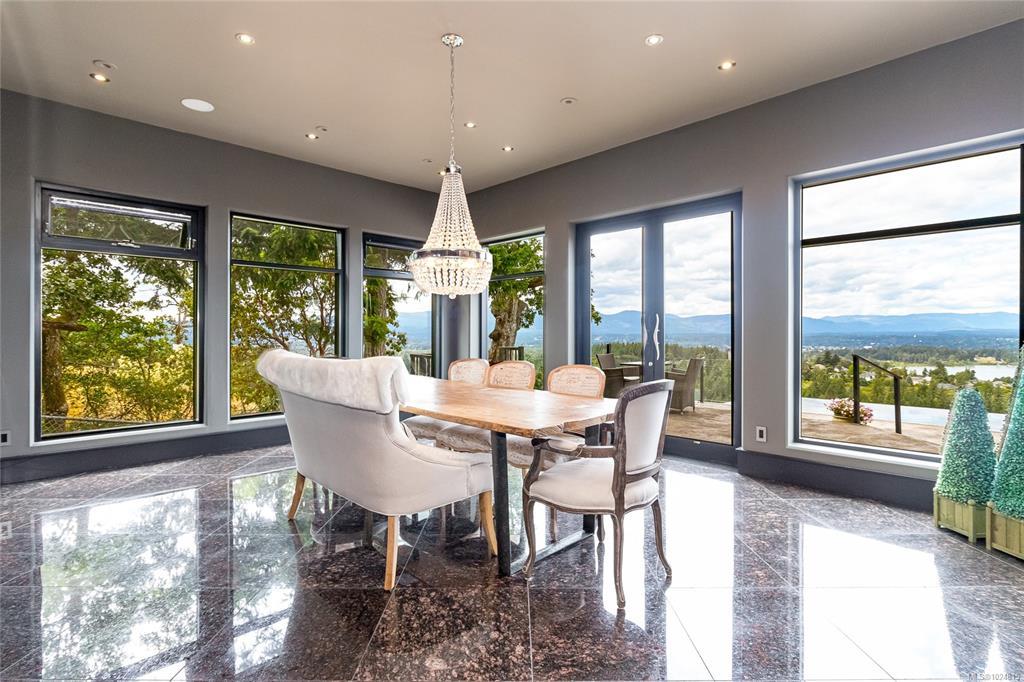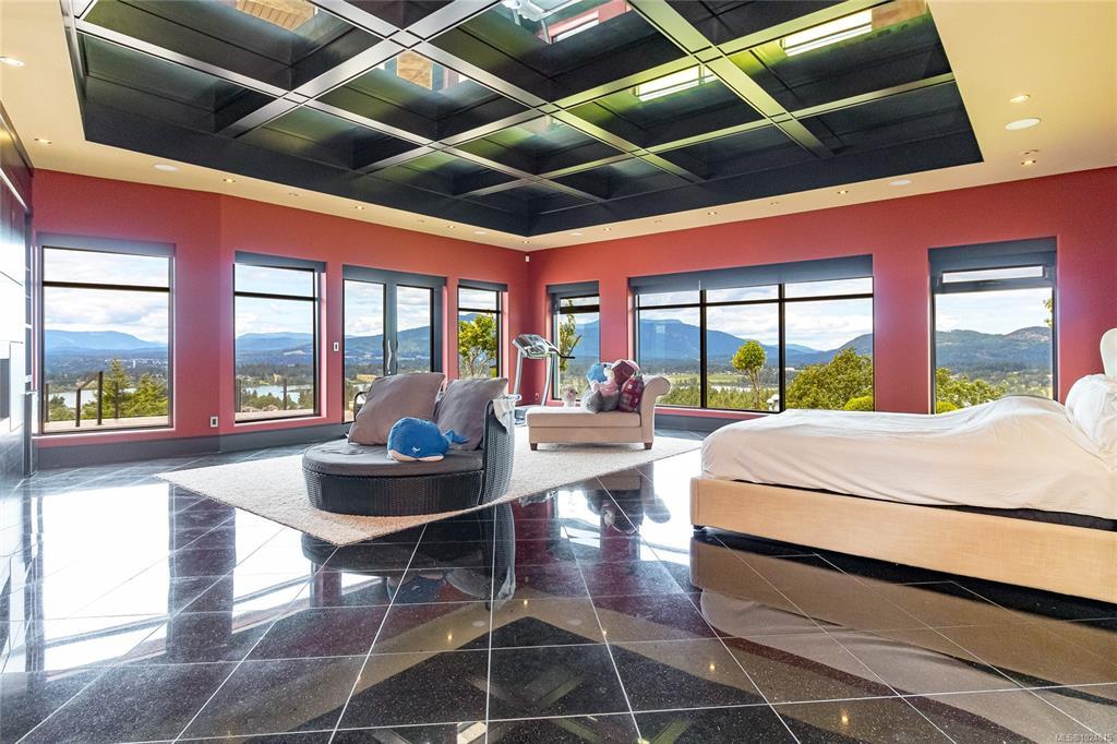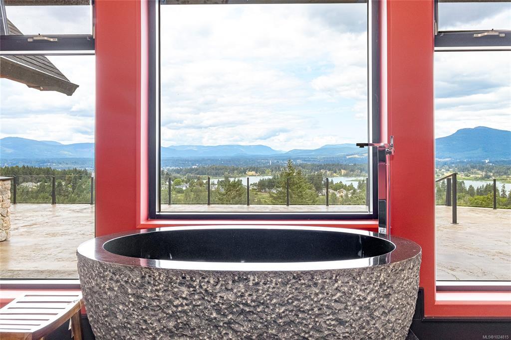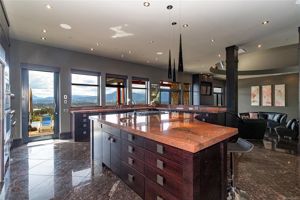 West coast contemporary masterpiece rests atop the hills of Maple Bay with breathtaking views of the Cowichan Valley! Drive over your own private bridge onto a stamped concrete courtyard and experience architecture at its finest! High ceilings (peaks at 29'), almost floor to ceiling low E tinted windows to take in the outstanding views, heated granite floors throughout the entire main level, a granite island kitchen to die for (24' x 20' + separate 10' x 12' pantry!), and a 1200+ sq ft primary bedroom wing with the most alluring ensuite & dressing room are a few outstanding features that this phenomenally spacious home offers. With 3 spacious bedrooms, 4 deluxe bathrooms and 2 stone natural gas fireplaces, there is room for every member of the family. Enjoy the infinity pool from the large concrete /slate decks, hot tub, shower room, large sitting area with the outdoor stone pizza oven. The South boundary adjacent is an Ecological Reserve. Far too many custom features to mention.