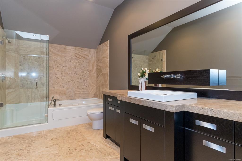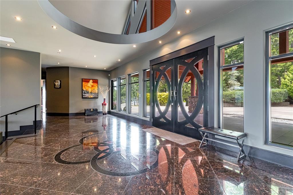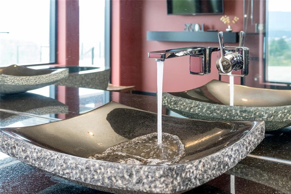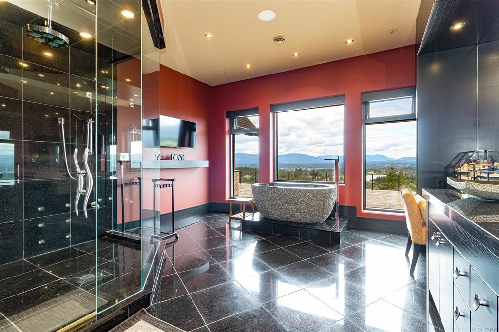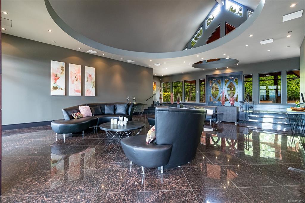West coast contemporary masterpiece rests atop the hills of Maple Bay with breathtaking views of the Cowichan Valley! Drive over your own private bridge onto a stamped concrete courtyard and experience architecture at its finest! High ceilings (peaks at 29'), almost floor to ceiling low E tinted windows to take in the outstanding views, heated granite floors throughout the entire main level, a granite island kitchen to die for (24' x 20' + separate 10' x 12' pantry!), and a 1200+ sq ft primary bedroom wing with the most alluring ensuite & dressing room are a few outstanding features that this phenomenally spacious home offers. With 3 spacious bedrooms, 4 deluxe bathrooms and 2 stone natural gas fireplaces, there is room for every member of the family. Enjoy the infinity pool from the large concrete /slate decks, hot tub, shower room, large sitting area with the outdoor stone pizza oven. The South boundary adjacent is an Ecological Reserve. Far too many custom features to mention.