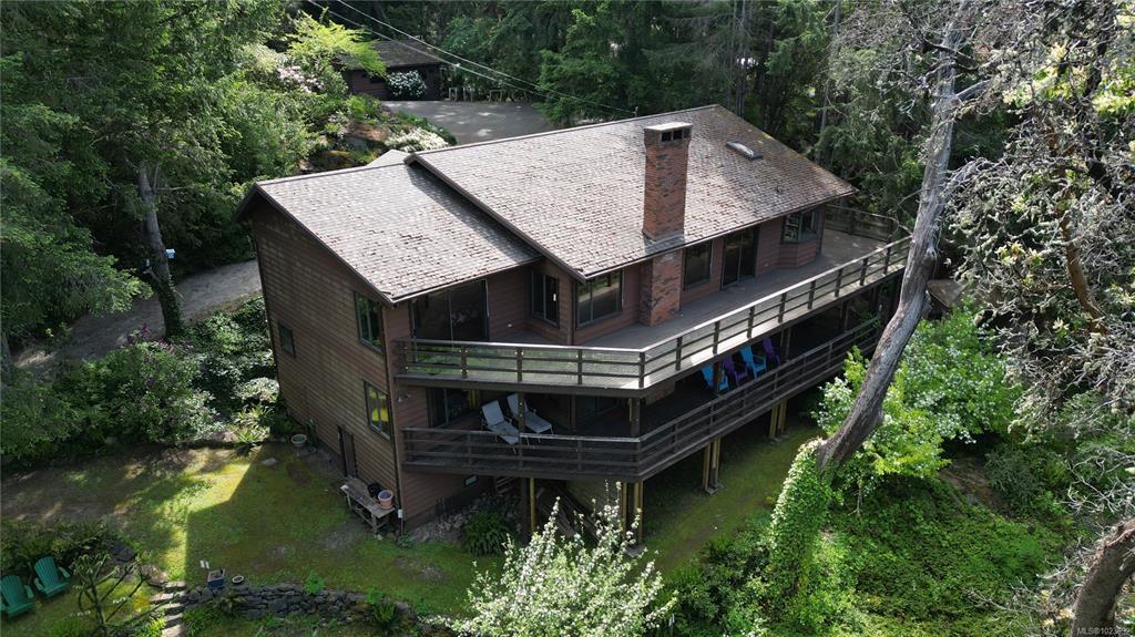 Magical views and sunsets over looking St. Mary Lake! This gorgeous 1.56 acre west facing gardeners' paradise features a spacious solidly built two storey family home. The main floor entrance level features vaulted ceilings with wood beams that grace an open living and dining room enhanced by six skylights and the cosiness of a woodstove next to a large master suite with a lovely view. Each level has a large wraparound southwest facing deck overlooking the lake. Gazebo with newer circular hot tub. The walkout lower level has two bedrooms, one bath and a large family room with woodstove. Property is securely fenced to protect the mature garden of flowering shrubs, rhododendrons, vegetable beds, rock gardens and fruit trees. 10-station irrigation system keeps the garden healthy. Full dry basement. Paved driveway and double garage. This home has good bones but is ready for a refresh so bring your good taste and ideas!