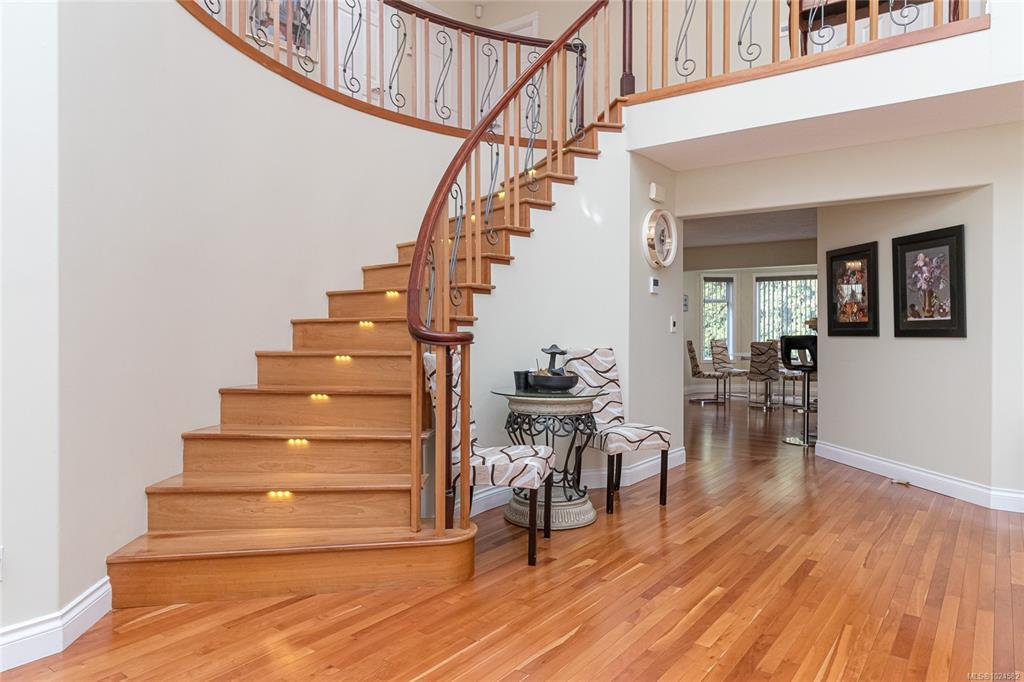 812 Dalewood is a charming 5 bedroom 3 bath family home beautifully situated across from Rithet Bog. Bright South facing overlooks nature's peaceful setting with distant views of the mountains from the top deck. Outstanding spacious open floor plan ideal for entertaining. Spectacular entrance with 14 to 17 feet ceilings in the living and dining room. 2 beautiful gas fireplaces, gleaming hardwood floors, family room off gourmet kitchen. Curved stairwell leading to the upper floor. Close to excellent schools, Broadmead, and Royal Oak shopping. Easy access to the airport and the ferries. Don't miss this exciting opportunity with this Broadmead gem.