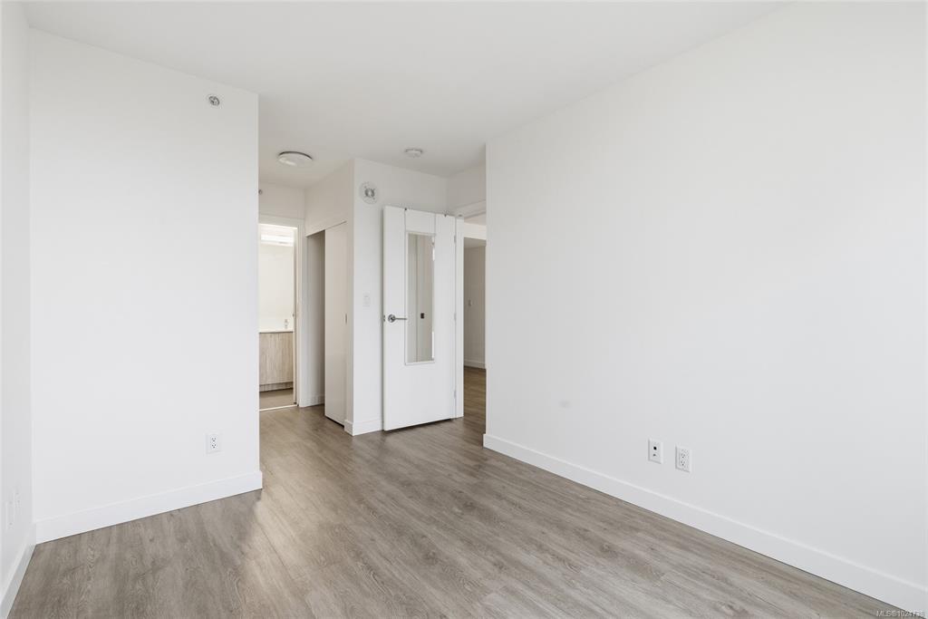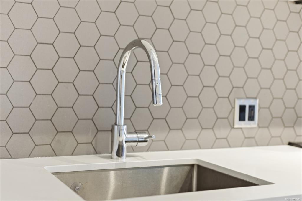 Gorgeous, bright 8th floor 1 bedroom + 1 bathroom condo that shows like new, offering beautiful city views and an efficient, contemporary layout. The modern one-wall kitchen features immaculate cabinetry, quartz countertops, a full-height backsplash, and stainless steel appliances including fridge, stove, dishwasher and over-the-range microwave. The spacious bedroom includes closet space with in-suite washer and dryer, and convenient access to the sleek bathroom. No age, pet, or rental restrictions make this an excellent option. Building amenities include a pet wash station, rooftop patio with BBQs, secure bike storage and storage locker. The balance of the 2-5-10 New Home Warranty remains for added peace of mind. A fantastic opportunity to own a move-in-ready home with modern finishes in the heart of Downtown Victoria.