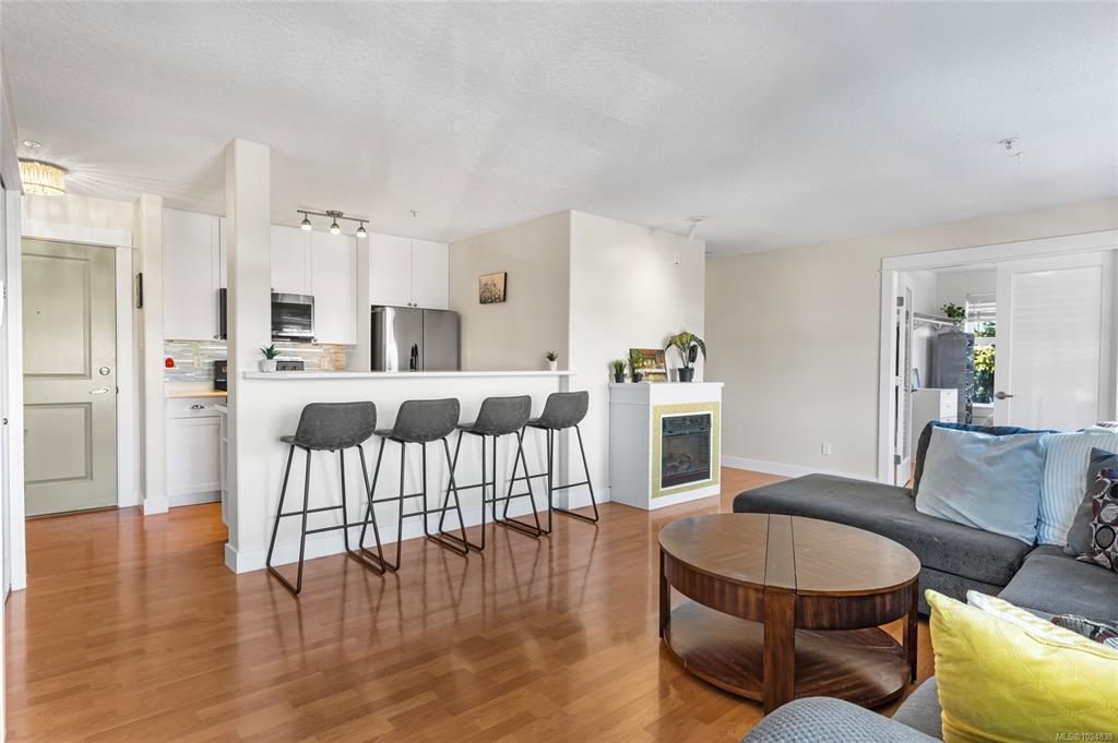 You have to take a look at this Spacious, 953 sq. ft., 3 Bedroom, 3rd floor Suite because it is Sure to Please! One of the Largest Floorplans in the building, it offers an Open Concept Design including Galley Kitchen with Newer Appliances & New Sink with New Counter Top & New Faucet, Living Room with Electric Fireplace, in-line Dining Area, a Balcony off the Primary Bedroom, a Generous 2nd Bedroom, & a 3rd Bedroom with French Doors , a 4 pc Bathroom with New Toilet & New Faucet, New Counter Top & Ceramic Tile Floor & some Plumbing Updates, In-Suite Laundry (newer Washer Dryer ) with Extra Storage Area. Stay Cool in the summer with Air Conditioning. Located on the Quiet Side of the Building, Covered Parking, Pet Friendly & Convenient Location Close to all of Langford’s Amenities. Come and see! Please confirm all important measurements & details.