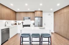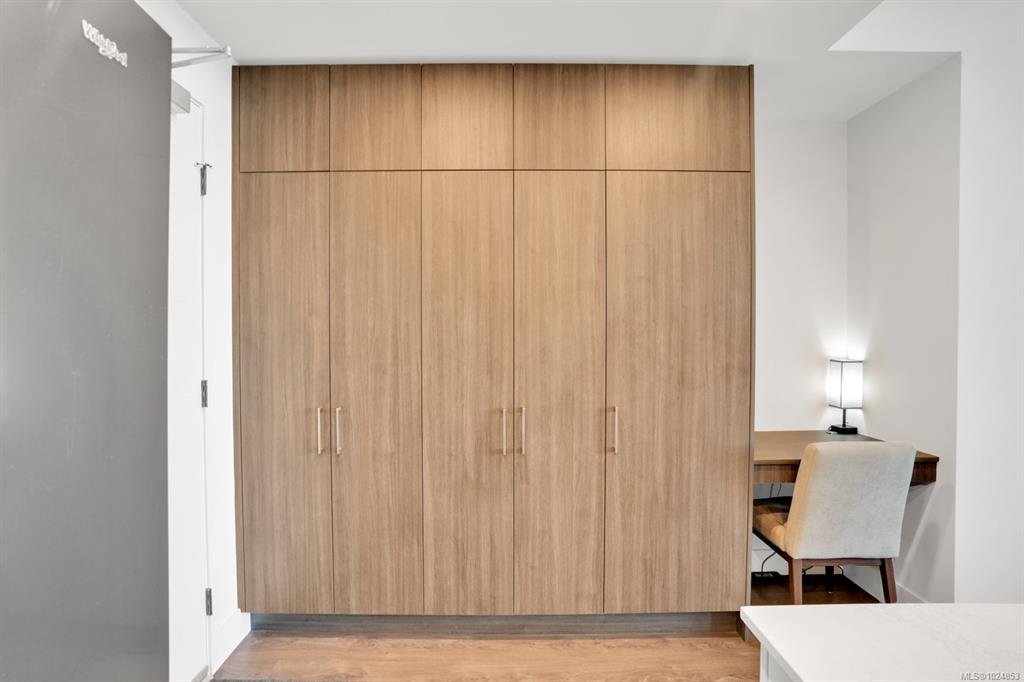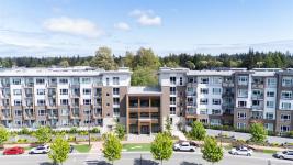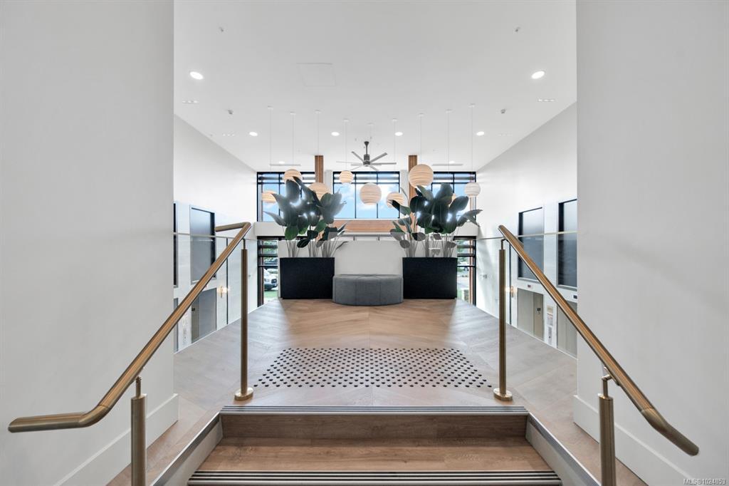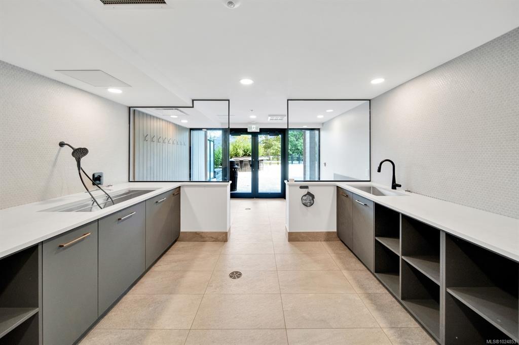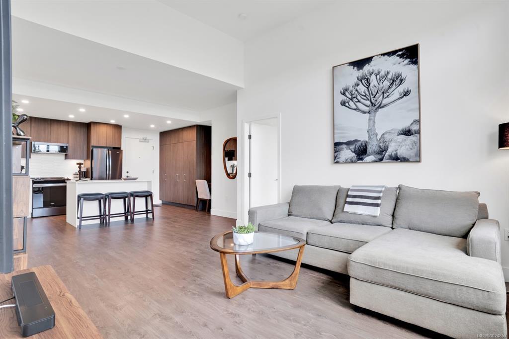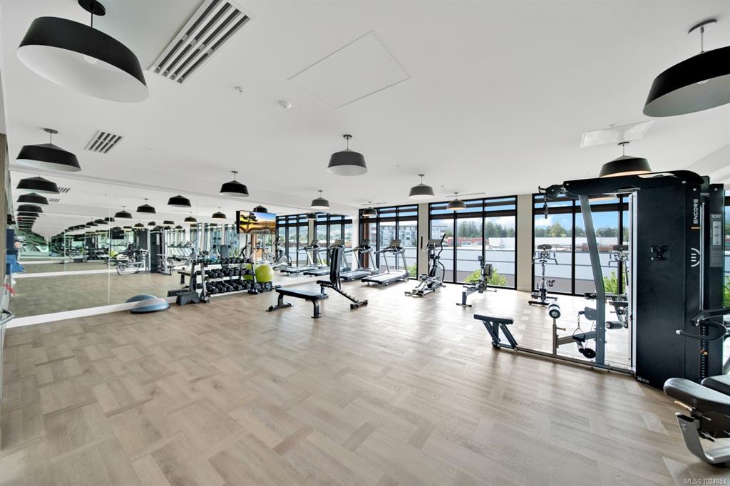Private, top-floor 2 bed, 2 bath condo at Reunion in Langford’s Belmont community. Nearly 1,000 square feet of well-designed space with elevated ceilings and oversized windows for great natural light. Bedrooms are separated for privacy, plus there's a work-from-home nook. The kitchen features full-height cabinetry, quartz countertops, Whirlpool appliances, and a large island. The primary suite includes a walk-through closet and ensuite with double sinks and glass shower. Private covered balcony has treetop views and a gas BBQ hookup. Full-size in-suite laundry, large pantry storage, secure underground parking, and storage locker included. Pet- and rental-friendly building. Amenities include fireside lounge, chef’s kitchen, gym, outdoor BBQ area, dog wash, dog run/play area, and bike storage. Across from Belmont Market and Westshore Town Centre. Direct access to Galloping Goose Trail and close to parks, lakes, and Bear Mountain.