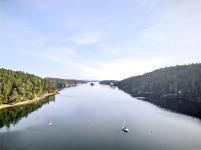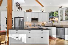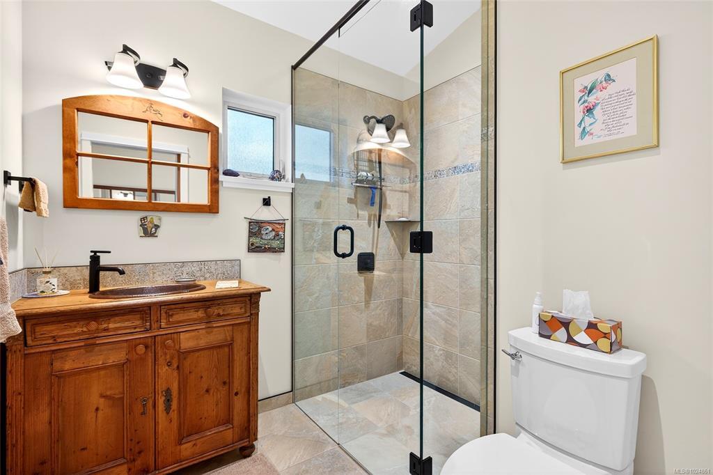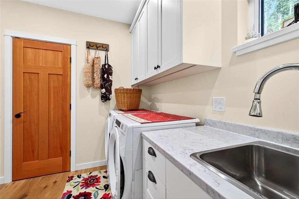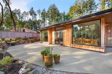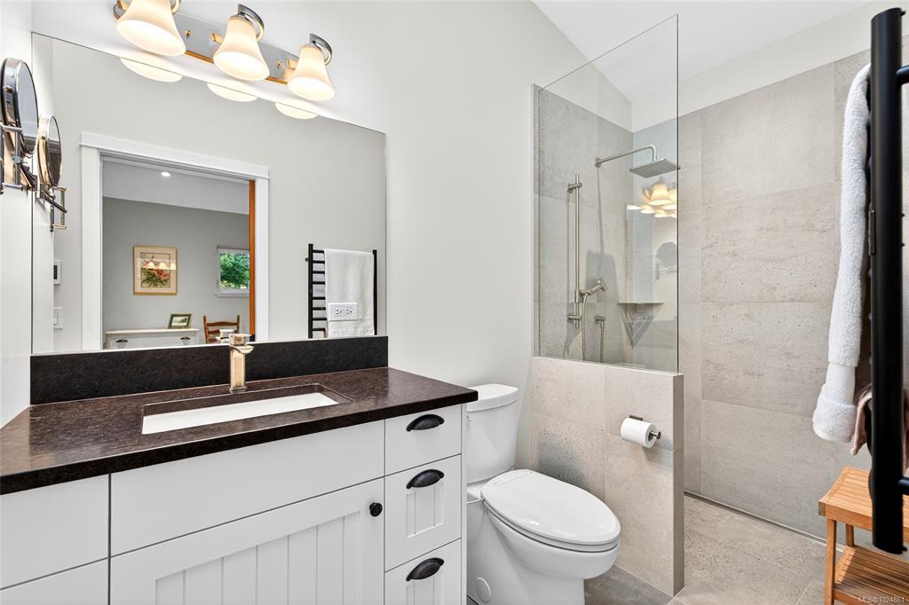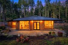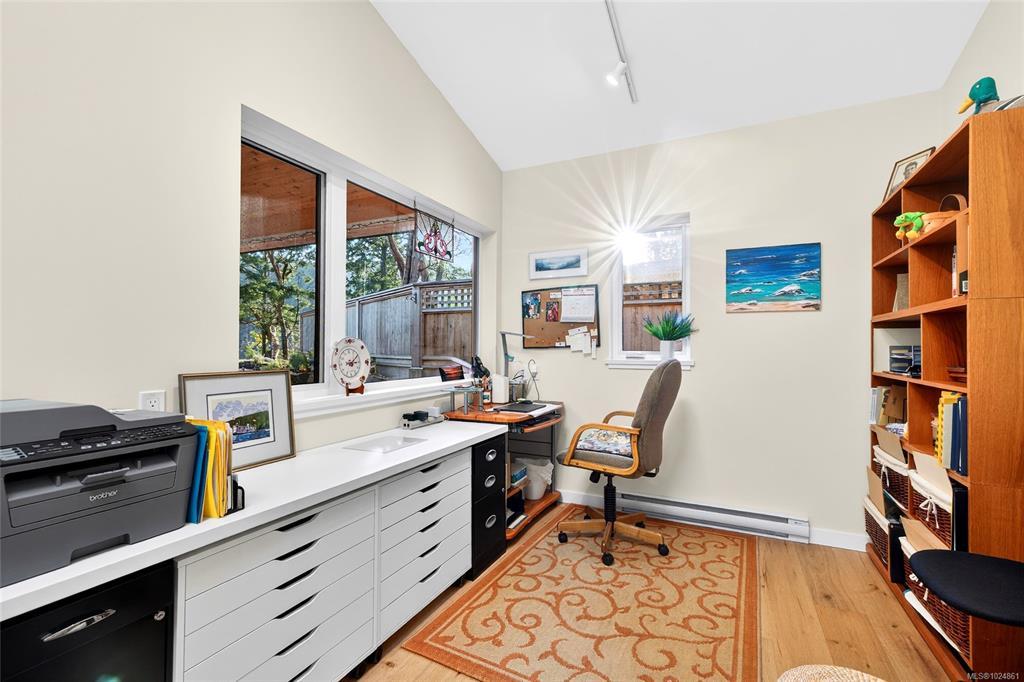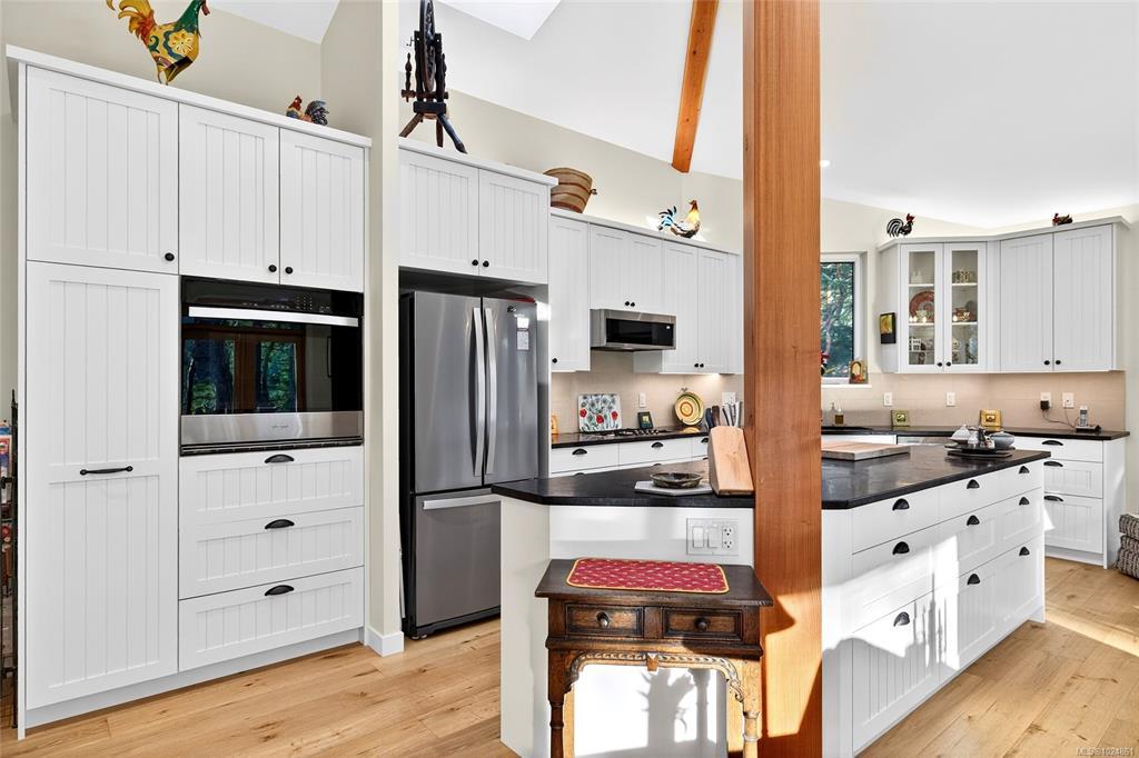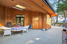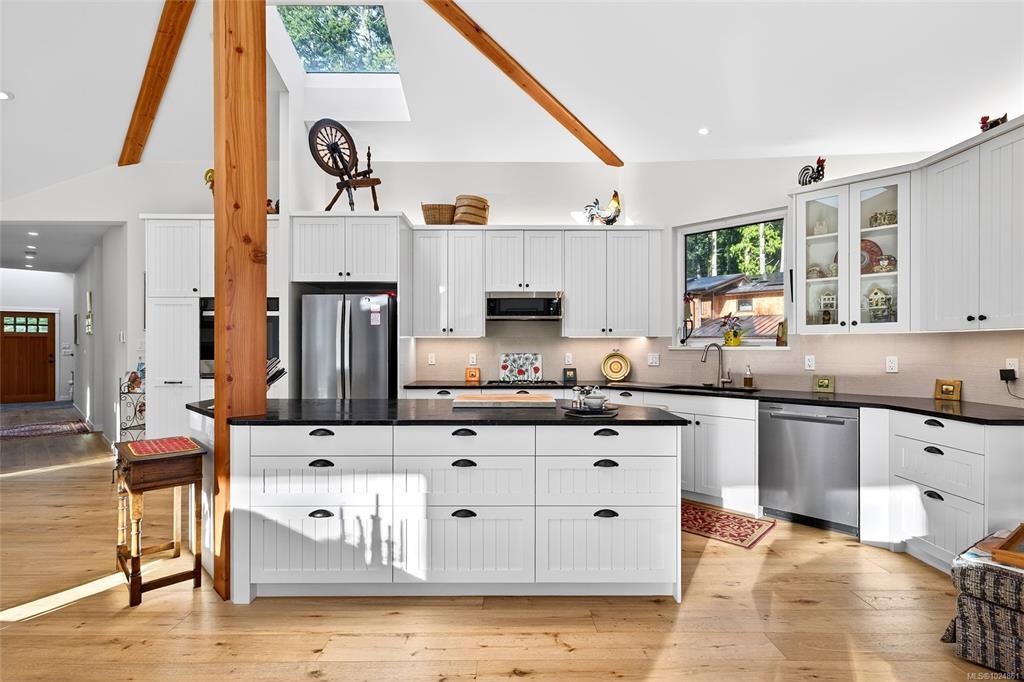 Stunning oceanfront residence showcasing refined West Coast design and quality craftsmanship. This custom-built 2-bedroom, 2-bathroom plus den home is truly turnkey, offering approximately 1,600 square feet of thoughtfully designed living space. An open-concept layout with vaulted ceilings, exposed wood beams, and custom millwork creates warmth and flow, while large windows fill the home with natural light and connect it to the surrounding coastal setting and wildlife.