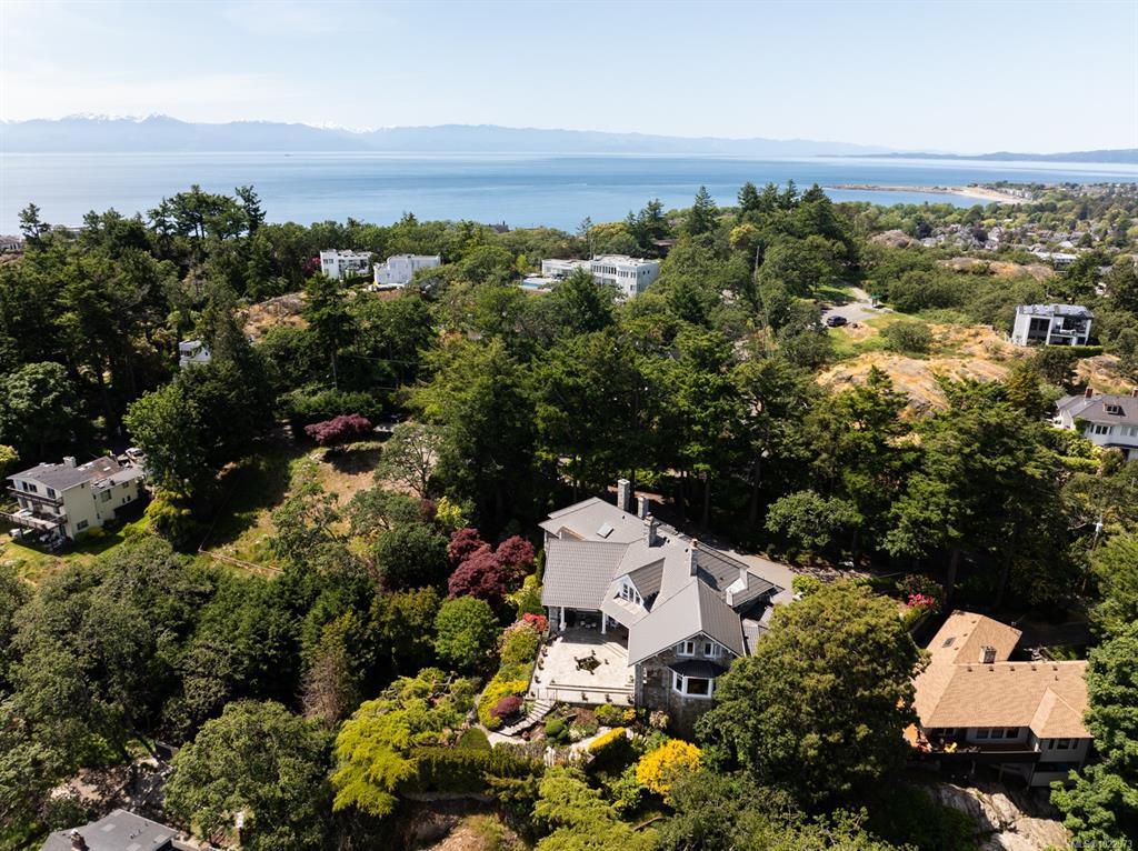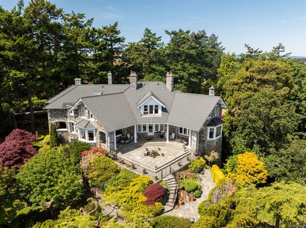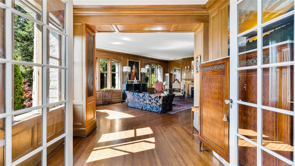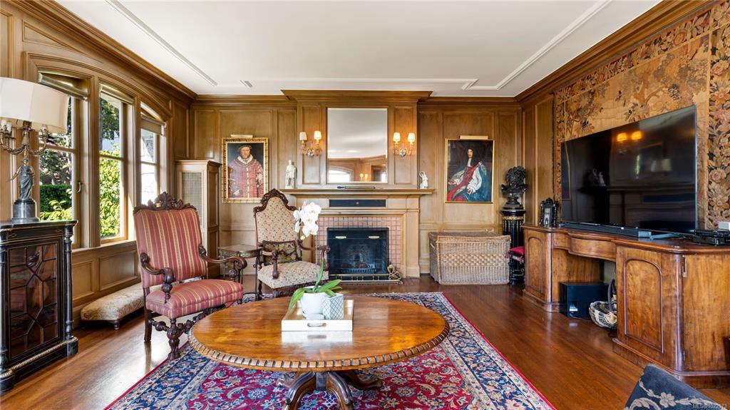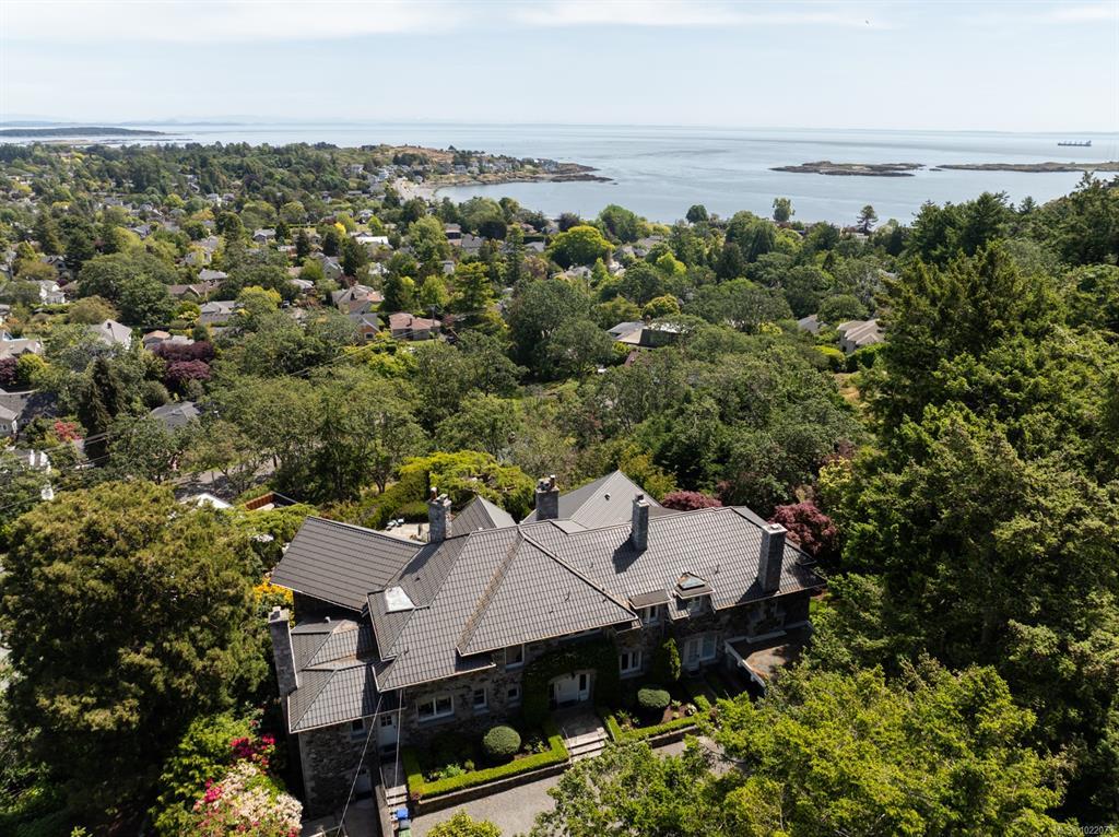 KINGSMOUNT - A landmark Oak Bay estate. Perched atop Gonzales Hill on a 0.8-acre lot, this exceptional residence is an architectural treasure by Samuel Maclure & D.C. Frame. A rare fusion of heritage and modern luxury with sweeping ocean and mountain views. The grand main floor, perfect for elegant entertaining, offers a chef’s kitchen, a formal dining room with silk wallpaper imported from Paris, an impressive living room, music room, library and sitting room. Upstairs offers a stately primary plus 5 bedrooms, many with fireplaces and walk-ins. Lower level features a private guest suite with separate entrance, wine room, and workshop. Ten-foot ceilings, oak flooring & original 100-year-old marble entry and sunroom highlight the exquisite old-world charm. An expansive stone patio, park-like gardens & water features offer an outdoor oasis with privacy & tranquility. Located on one of Oak Bay’s most beautiful lanes, steps to Gonzales Hill Park, beaches, village, schools, golf & dining.