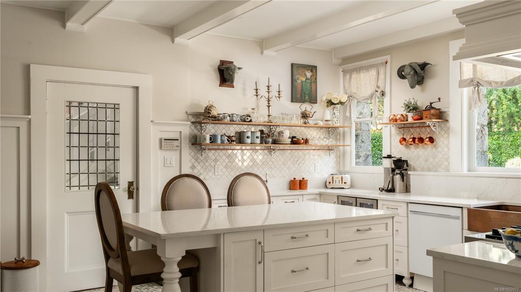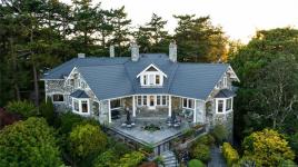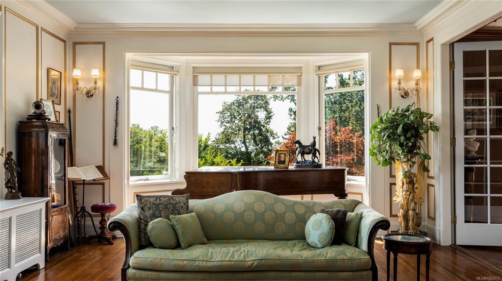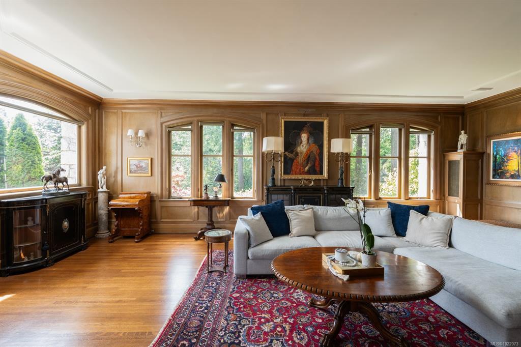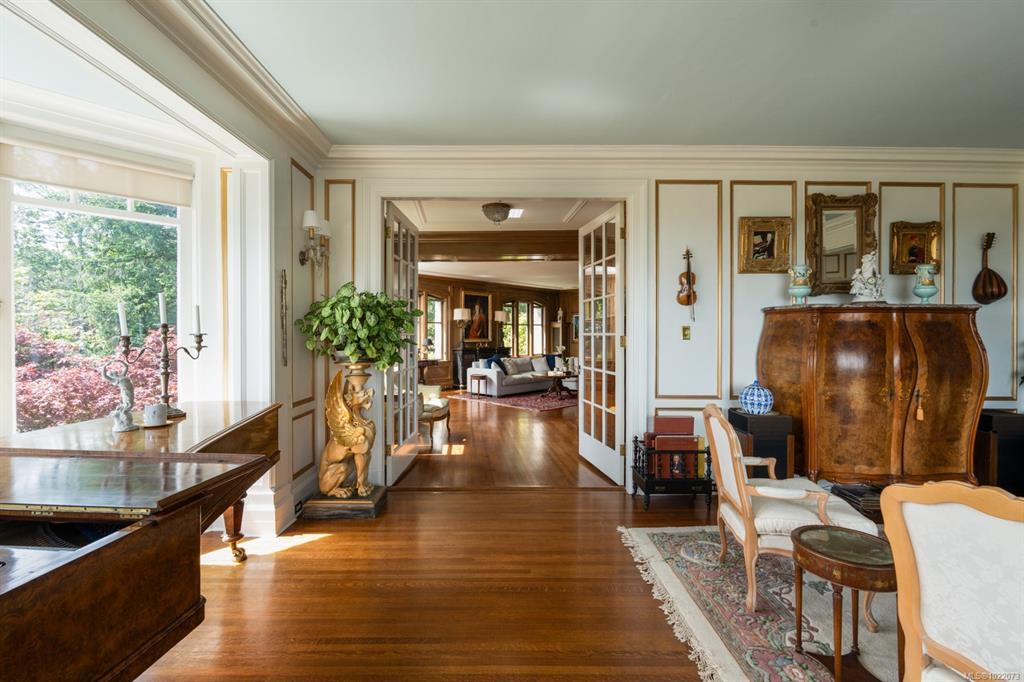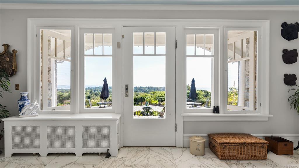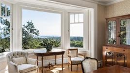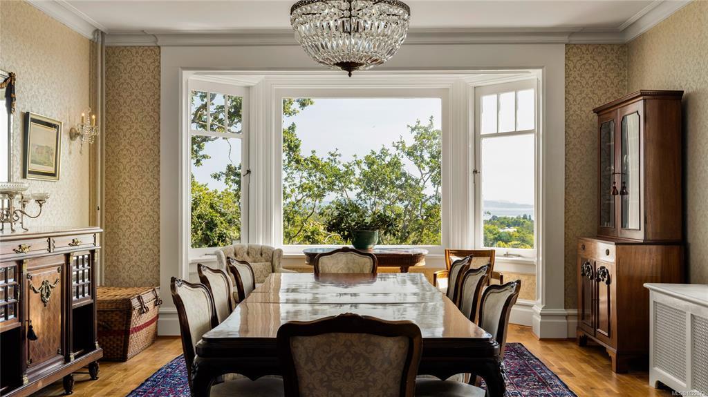 KINGSMOUNT - A landmark Oak Bay estate. Perched atop Gonzales Hill on a 0.8-acre lot, this exceptional residence is an architectural treasure by Samuel Maclure & D.C. Frame. A rare fusion of heritage and modern luxury with sweeping ocean and mountain views. The grand main floor, perfect for elegant entertaining, offers a chef’s kitchen, a formal dining room with silk wallpaper imported from Paris, an impressive living room, music room, library and sitting room. Upstairs offers a stately primary plus 5 bedrooms, many with fireplaces and walk-ins. Lower level features a private guest suite with separate entrance, wine room, and workshop. Ten-foot ceilings, oak flooring & original 100-year-old marble entry and sunroom highlight the exquisite old-world charm. An expansive stone patio, park-like gardens & water features offer an outdoor oasis with privacy & tranquility. Located on one of Oak Bay’s most beautiful lanes, steps to Gonzales Hill Park, beaches, village, schools, golf & dining.