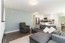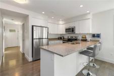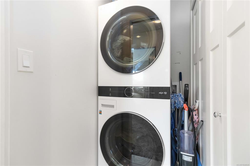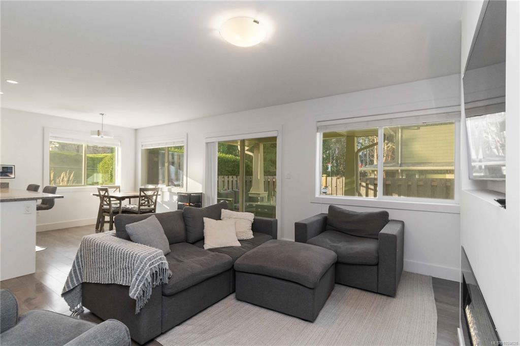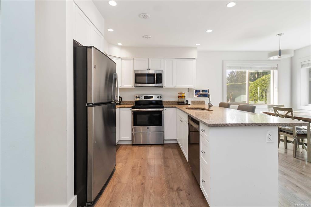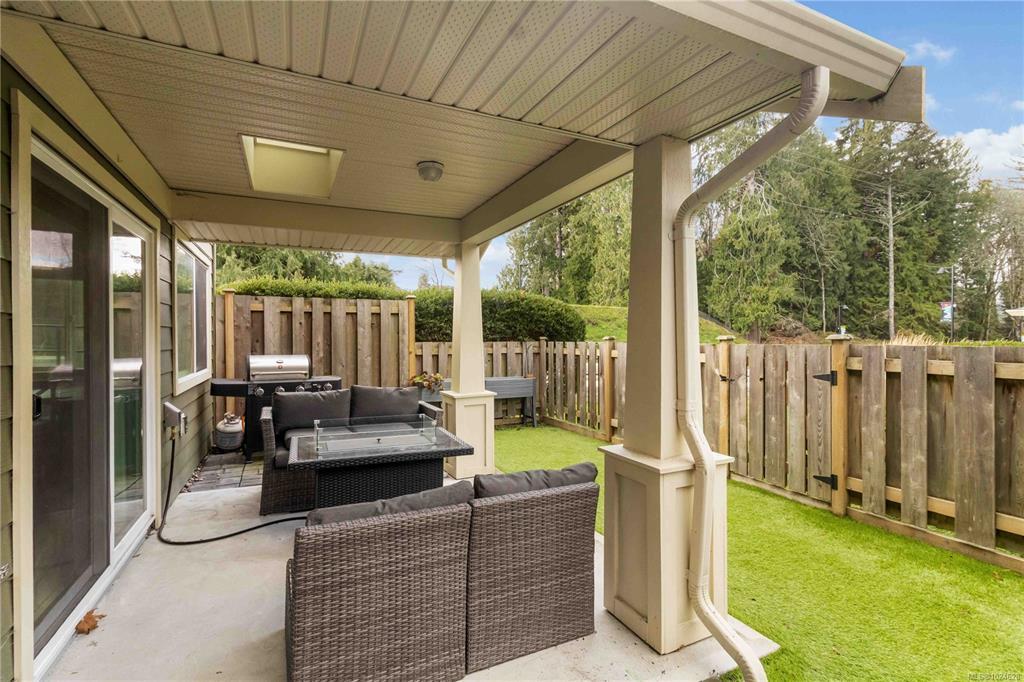 Presenting this stunning corner unit 3-bed townhome located in the charming Grasslands complex. The main floor boasts a bright and spacious open concept design, complete with quartz countertops in the kitchen, SS Appliances, hot water on demand, a generous dining area that flows into the bright living room featuring an electric fireplace. Step outside to the covered patio and fenced backyard with a convenient gas hookup for your BBQ needs. Upstairs, the spacious Primary Bedroom offers a walk-in closet, ensuite with quartz countertops, luxurious stand-up shower, along with two additional bedrooms, a second full bathroom, and a convenient laundry area. Enjoy the serene backdrop of forest greenspace right in your backyard. This home includes a single car garage plus driveway. Low Strata Fees of $240! Conveniently located within walking distance to a variety of amenities including shopping centers, recreational facilities, restaurants, library, oceanfront, and picturesque walking trails.