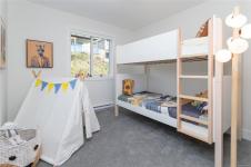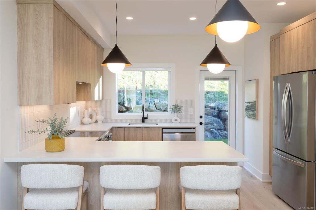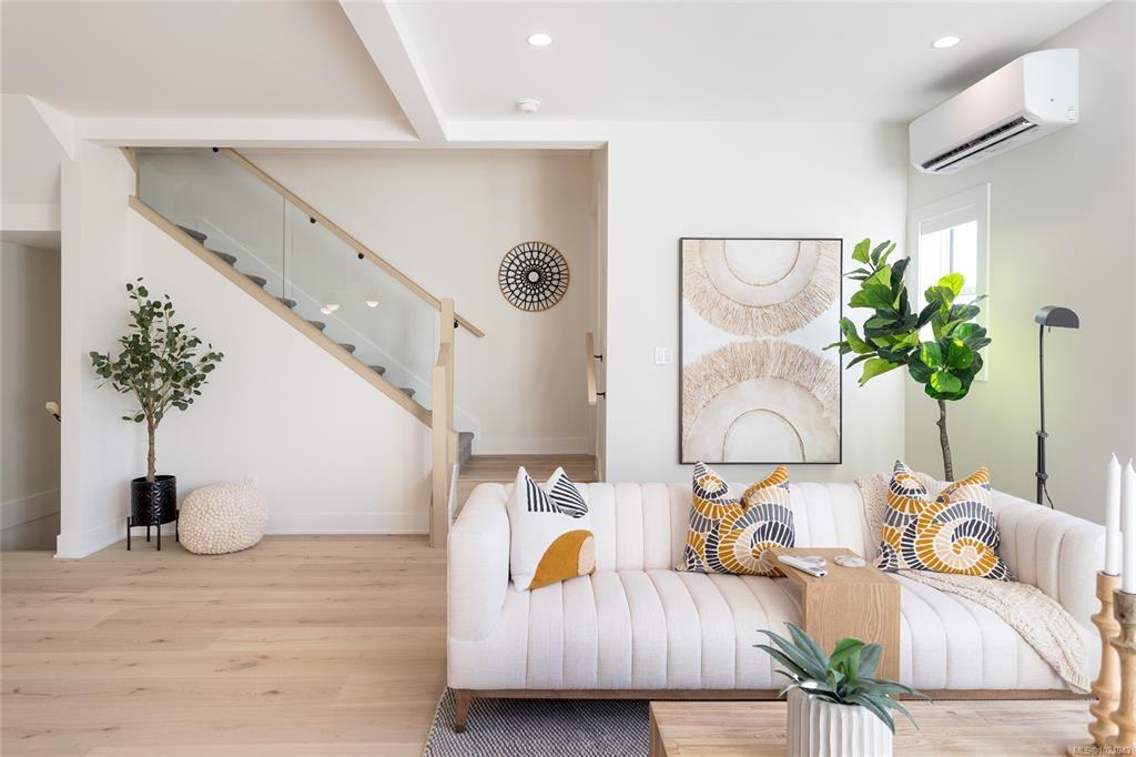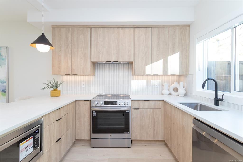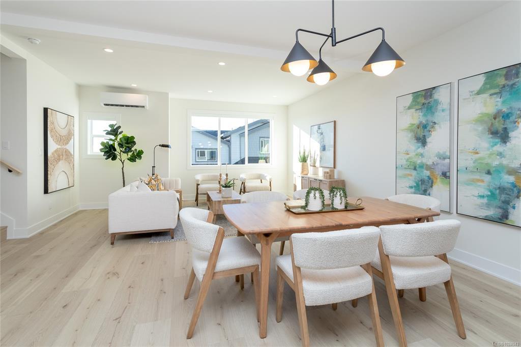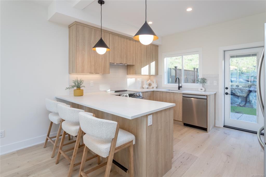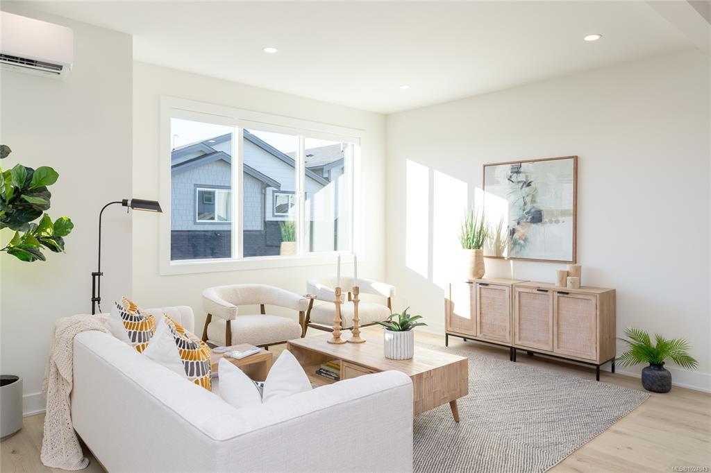 Ask about our limited $10,000 credit promotion. Dolomite Ridge, a collection of 34 spacious townhomes from award winning Verity Construction in the Westview development in the Bear Mountain area. This home features 4 bedrooms and 3 baths, as well as separate Den OR Media room space. This step up style lot allows for an open concept living area that walks out onto a large patio and yard area with gas BBQ hookup. Great for hosting! The kitchen is complete with a stainless steel appliance package, quartz counters, and a peninsula with breakfast bar. Upstairs is three bedrooms including a primary with walk in closet and ensuite with tiled walk in shower and dual sinks. All homes have efficient heating and cooling via a dual head ductless heat pump system paired with baseboards. Built Green Certified. Garage AND covered driveway area. Laminate flooring in the main area. Landscaping with irrigation. New home warranty. Close to new amenities in the area.