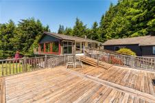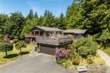 Peace, Privacy & Panoramic Views! Discover it all at this 1973 built, 2,150sf, two-story home nestled on a stunning, S.facing, 1.15ac Seaside paradise! Enjoy breathtaking vistas of the Strait of JDF & Olympic Mountains from multiple vantage points throughout the property. This unique home offers 3BR, 2BA, lower level family room w/wet bar, & a one-of-a-kind main-level living area w/spectacular panoramic views. Main level boasts an open-concept kitchen, dining & living room w/2BR/1BA & easy access to rooftop entertainment-size deck. Downstairs, the funky family room w/built-in bar & woodstove adds character & charm. Recently renovated lower BR+BA show a glimpse into the home's full potential! New heatpump! Semi-detached dbl garage, large sunroom, & original detached 525sf dwelling offering endless possibilities. Beautifully landscaped to preserve a natural park-like feel, this property is only steps to the beach & offers the serenity of rural oceanside living w/all the comforts of home.