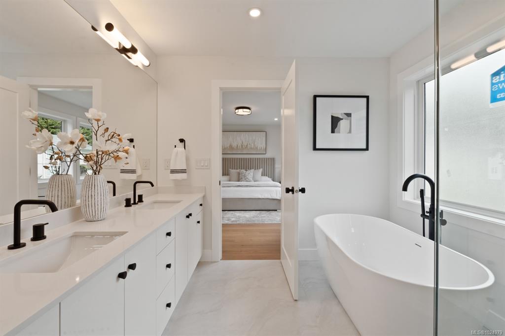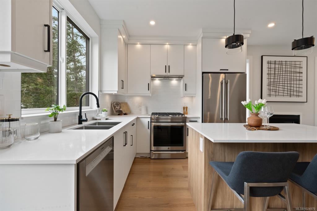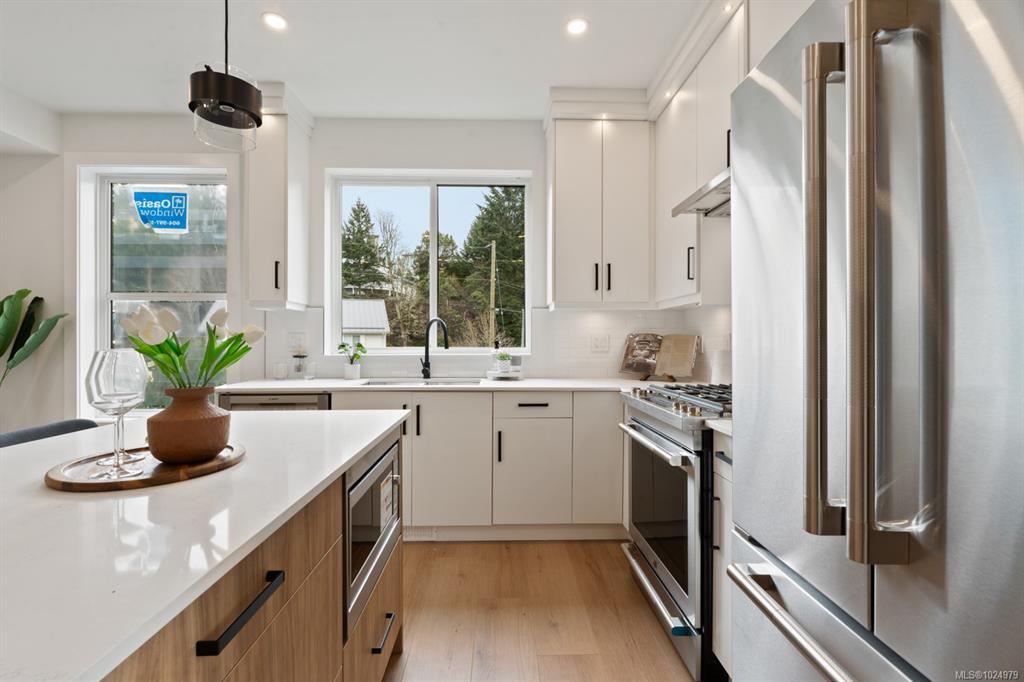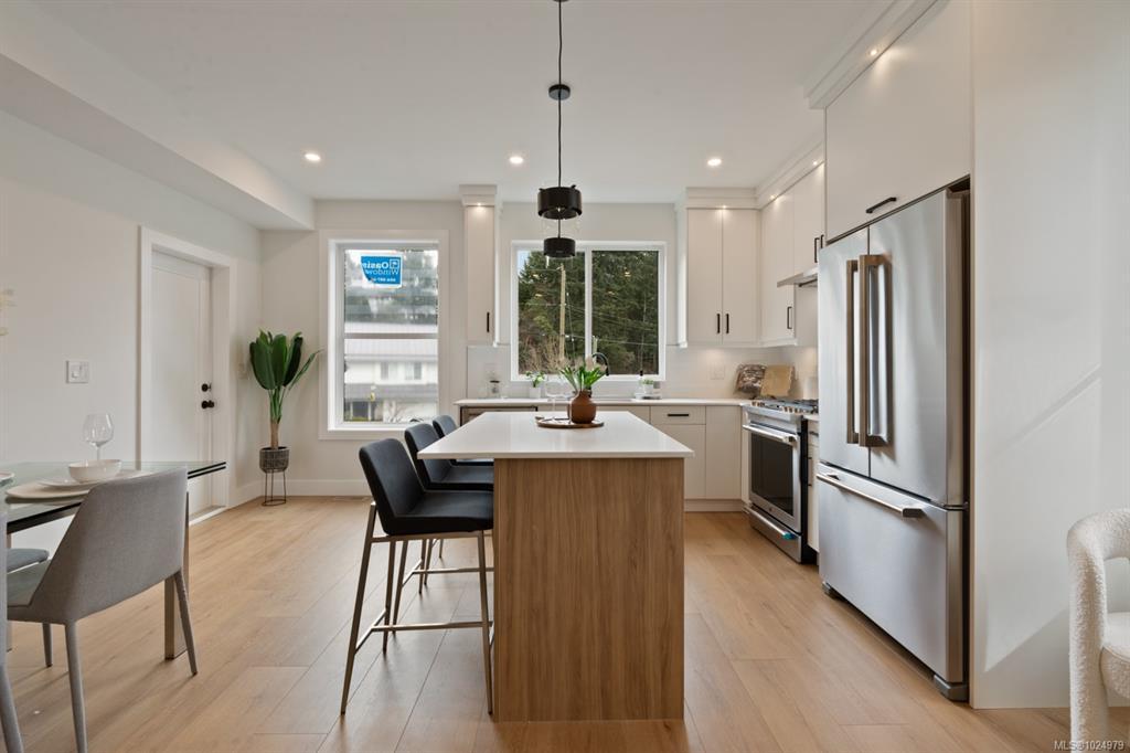 Welcome to The Heights, a collection of 10 single-family homes on a quiet cul-de-sac off Bellamy. Designed with transitional style, these homes offer warm finishes, functional layouts for everyone and timeless appeal. This 5 BED & 4 BATH home spans over 2,300 sqft with suite potential. Thoughtfully designed from the moment you enter with the warm flooring & windows that fill the space with tons of natural light. The kitchen features two-toned cabinetry, black hardware, SS appliance package and quartz countertops and island. The primary suite features custom wainscotting, walk-in closet with built-ins and an ensuite that will make you feel like you’re at the spa. Retreat to the lower floor where you will find an oversized media/family room, perfect for entertaining or a family movie night. Located minutes from Langford’s recreation, shopping, and all school levels, The Heights is an ideal location for families.
